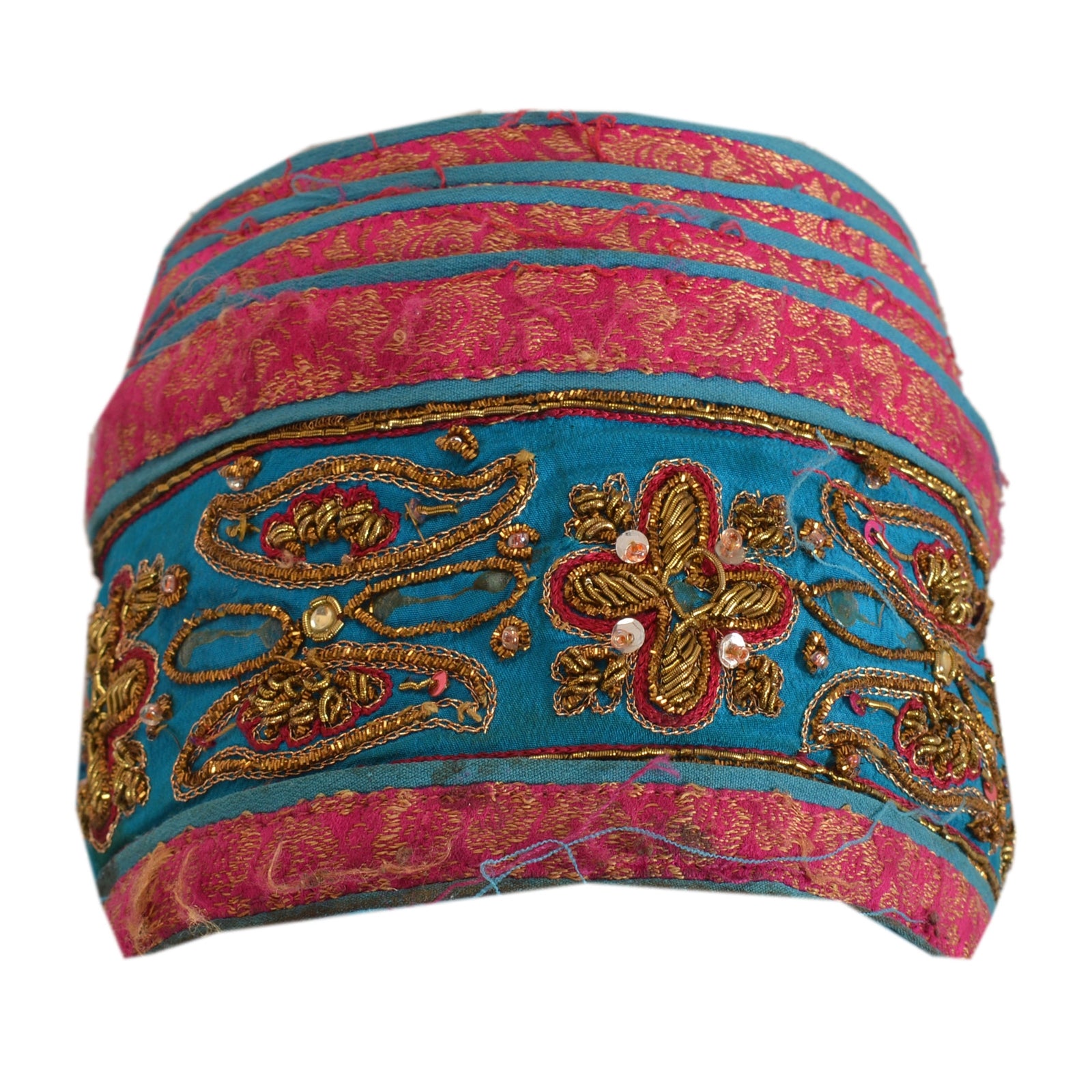 Sanskriti Vintage Sari Border Hand Beaded 1 Yard Indian Trim Sewing Blue Lace