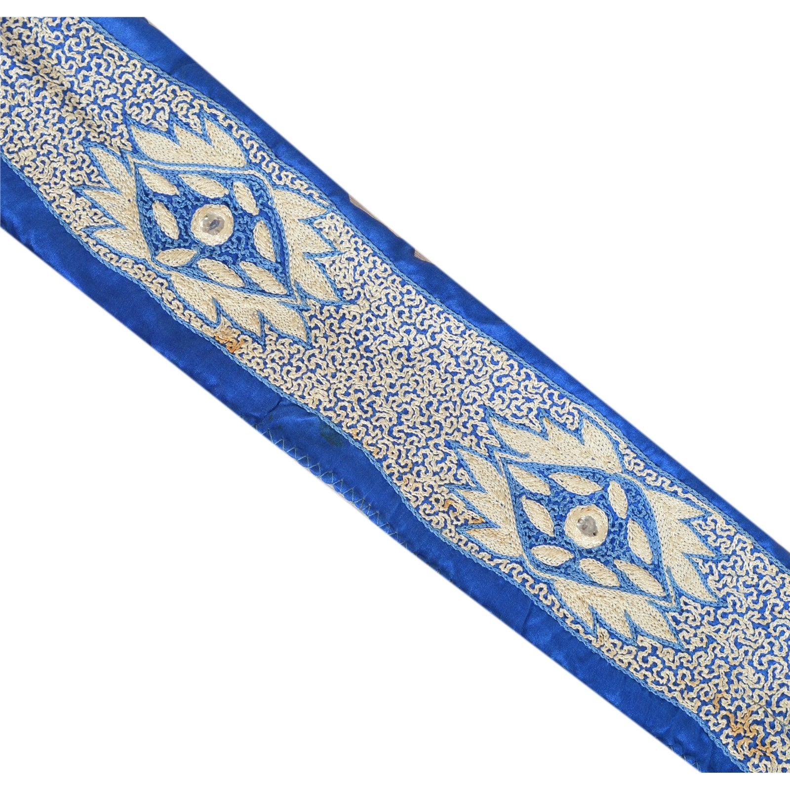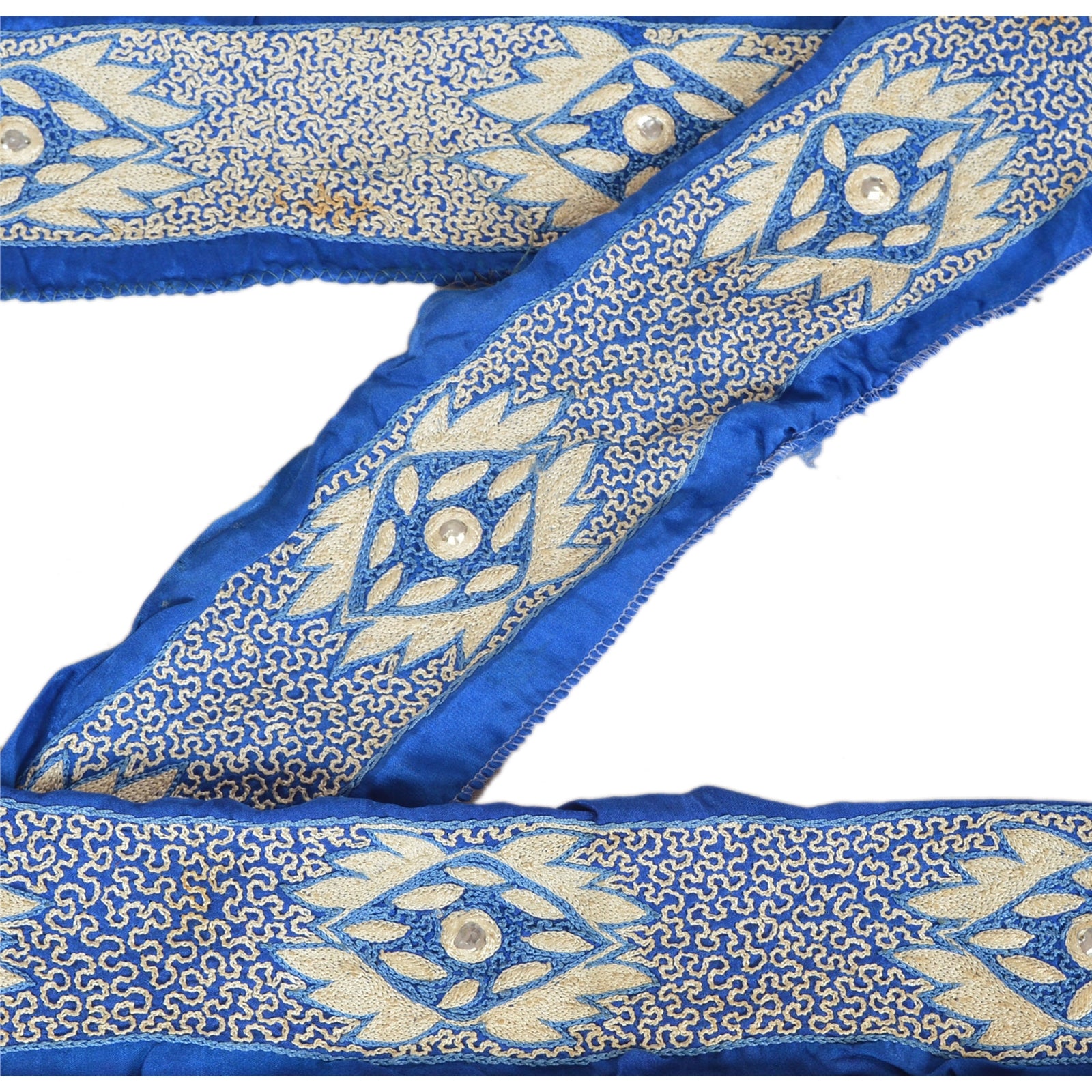 Sanskriti Vintage Sari Border Hand Beaded 1 Yd Craft Trim Sewing Dark Blue Lace