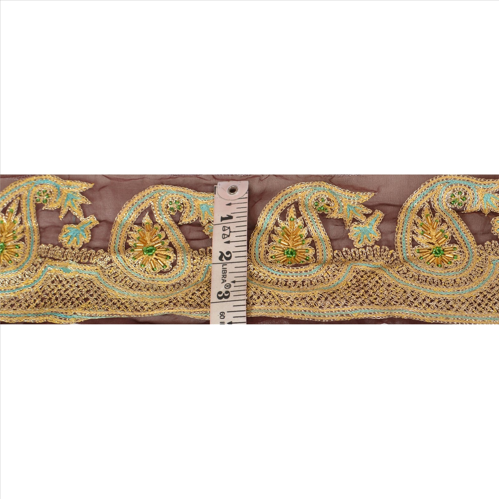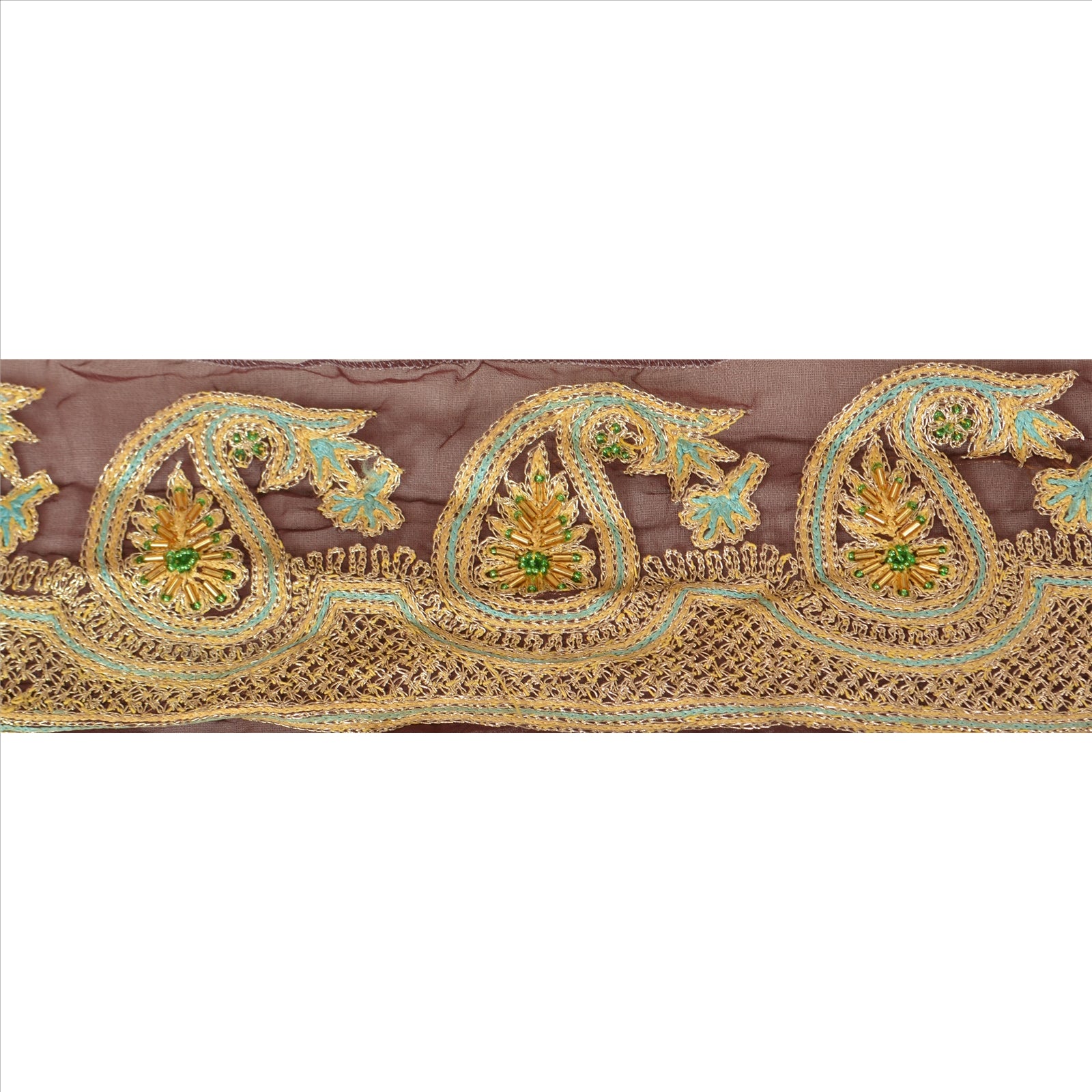 Sanskriti Vintage Sari Border Hand Beaded 1 Yd Indian Trim Craft Brown Lace