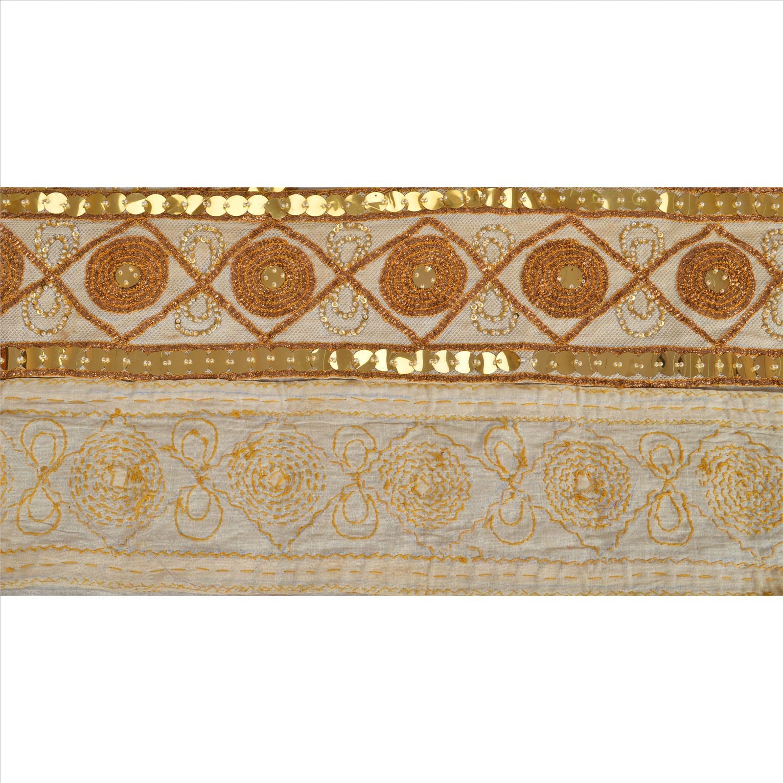 Sanskriti Vintage Sari Border Hand Beaded 1 Yd Indian Trim Sewing Cream Lace