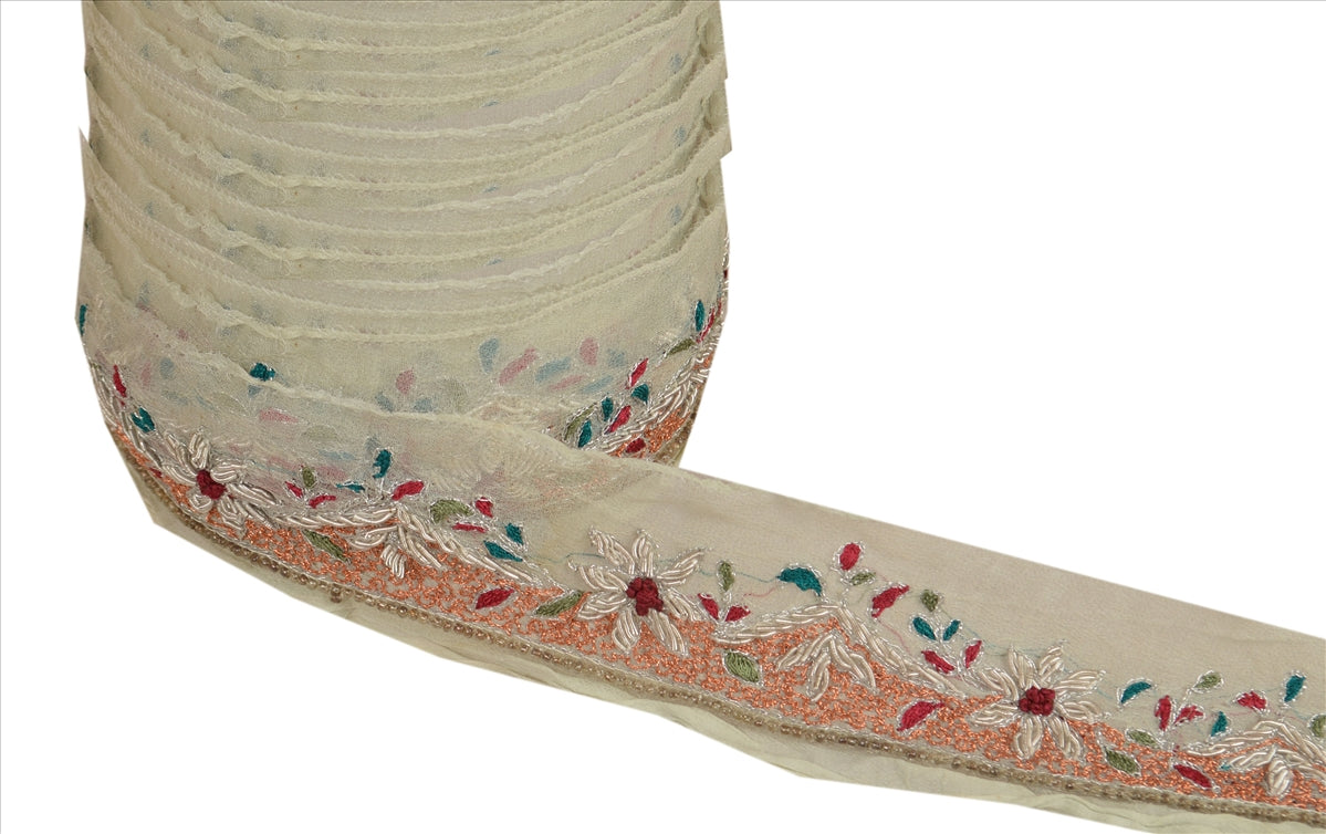 Sanskriti Vintage Sari Border Hand Beaded 1 Yd Indian Trim Sewing Cream Lace
