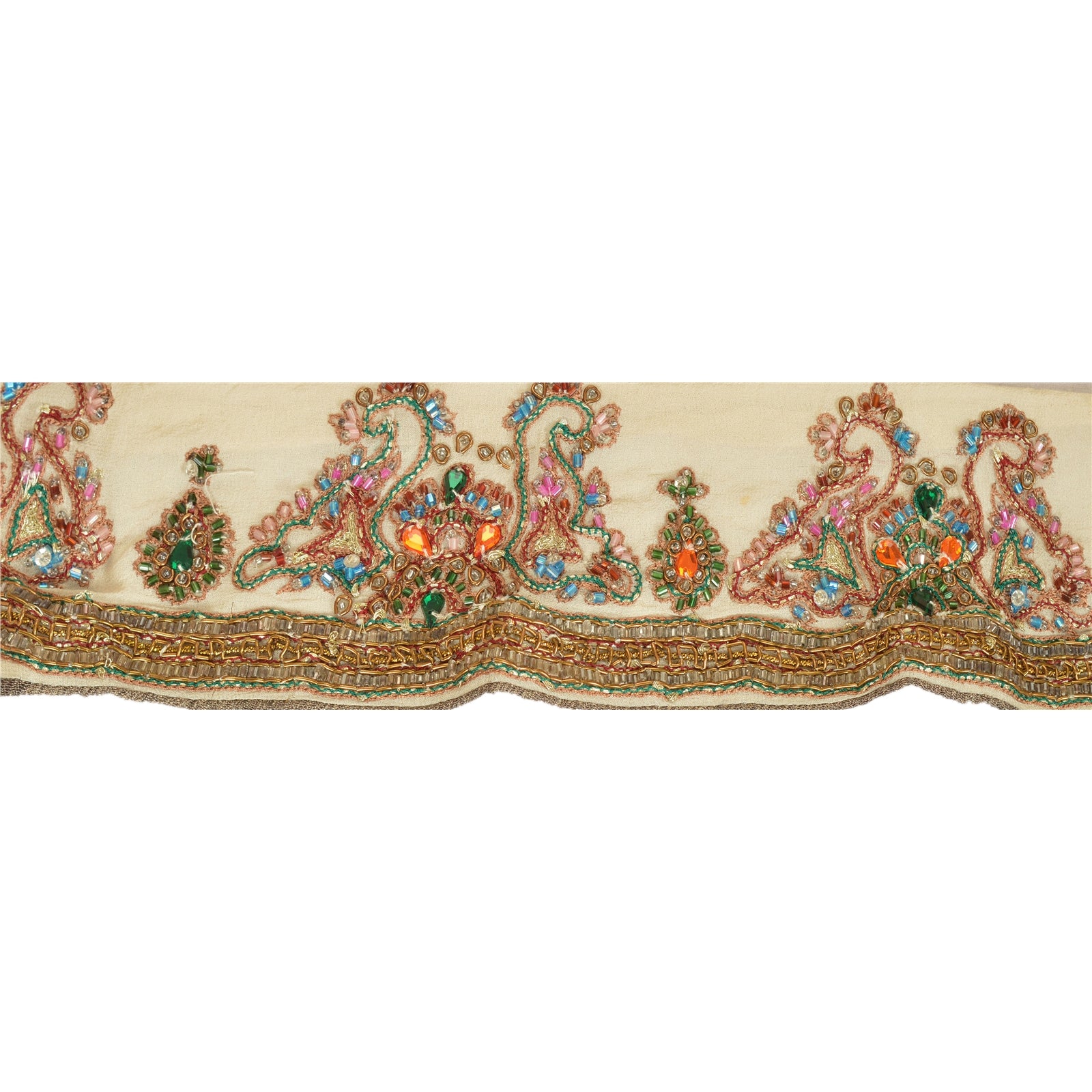 Sanskriti Vintage Sari Border Hand Beaded 1 Yd Indian Trim Sewing Cream Lace