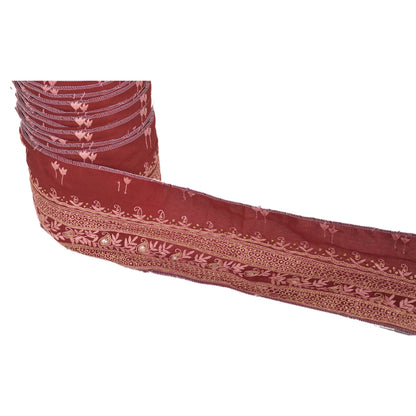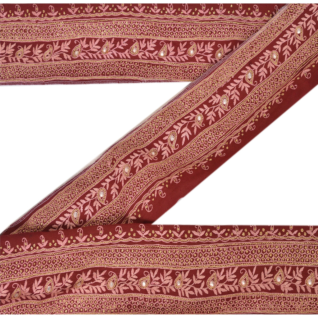 Sanskriti Vintage Sari Border Hand Beaded 1 YD Indian Trim Sewing Dark Red Lace