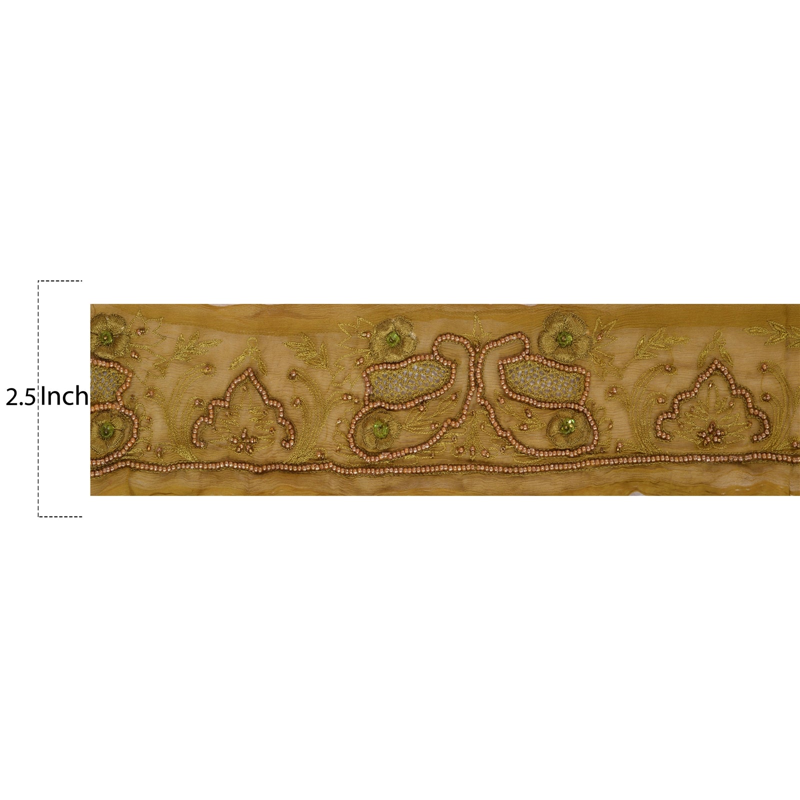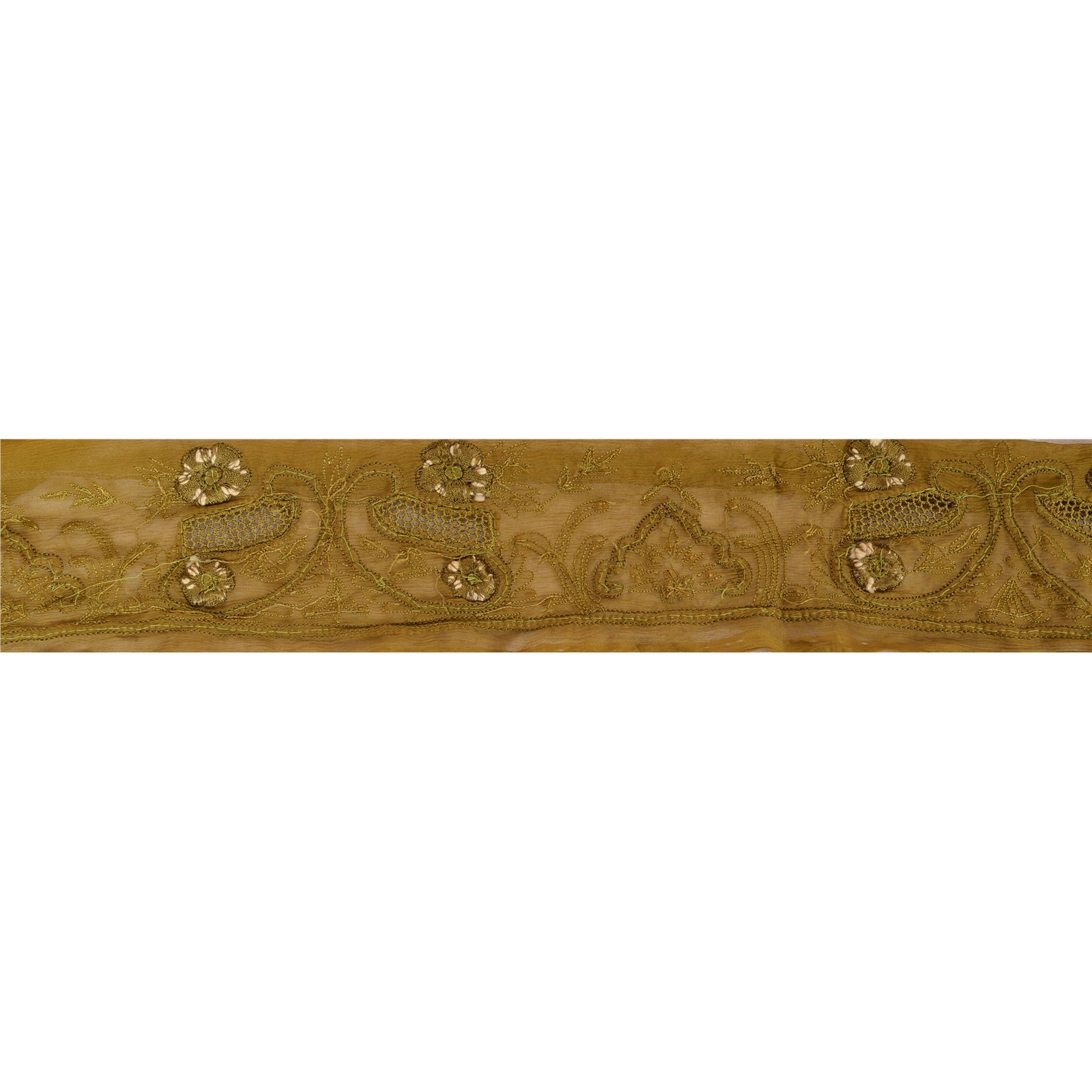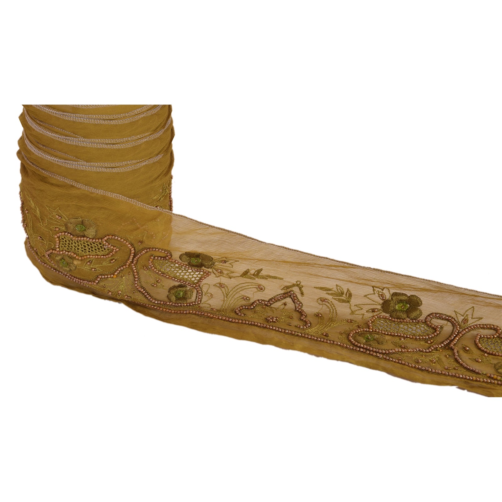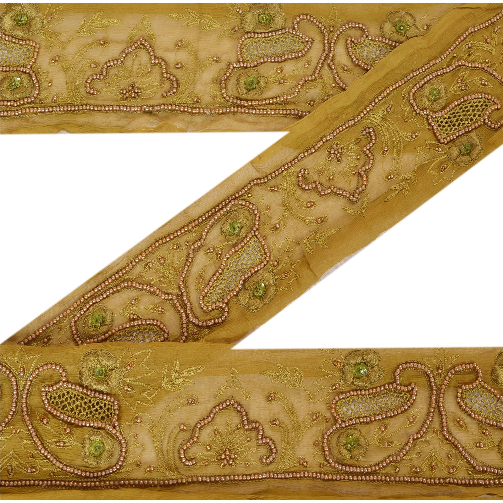 Sanskriti Vintage Sari Border Hand Beaded 1 Yd Indian Trim Sewing Green Lace
