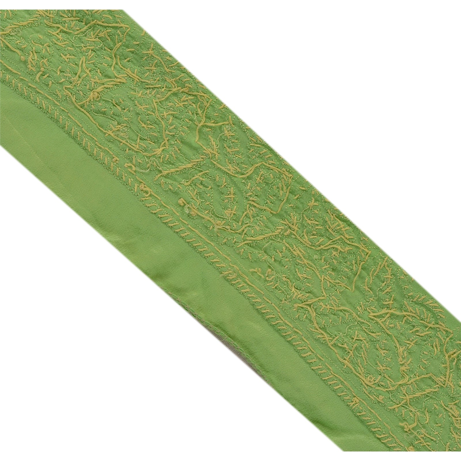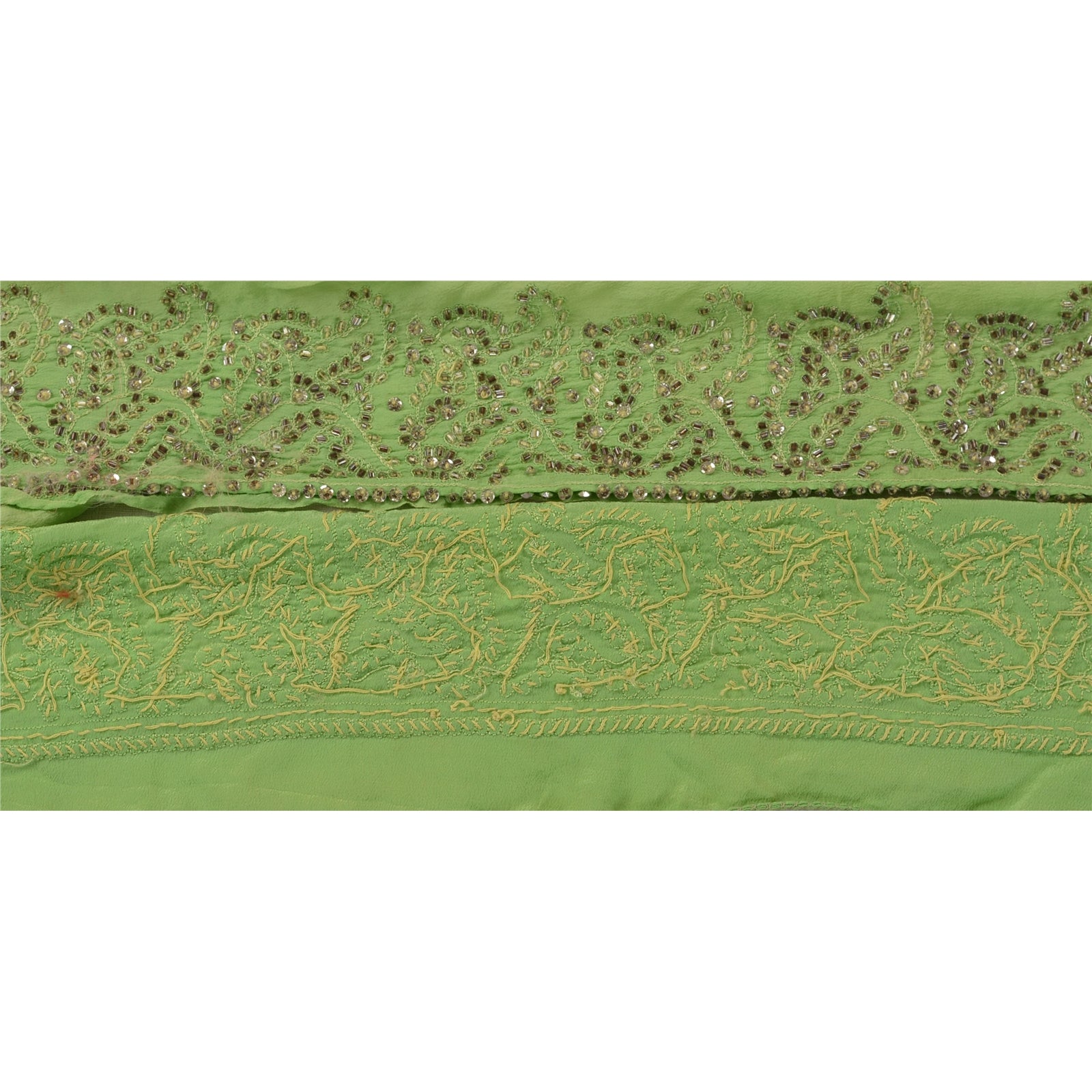 Sanskriti Vintage Sari Border Hand Beaded 1 Yd Indian Trim Sewing Green Lace