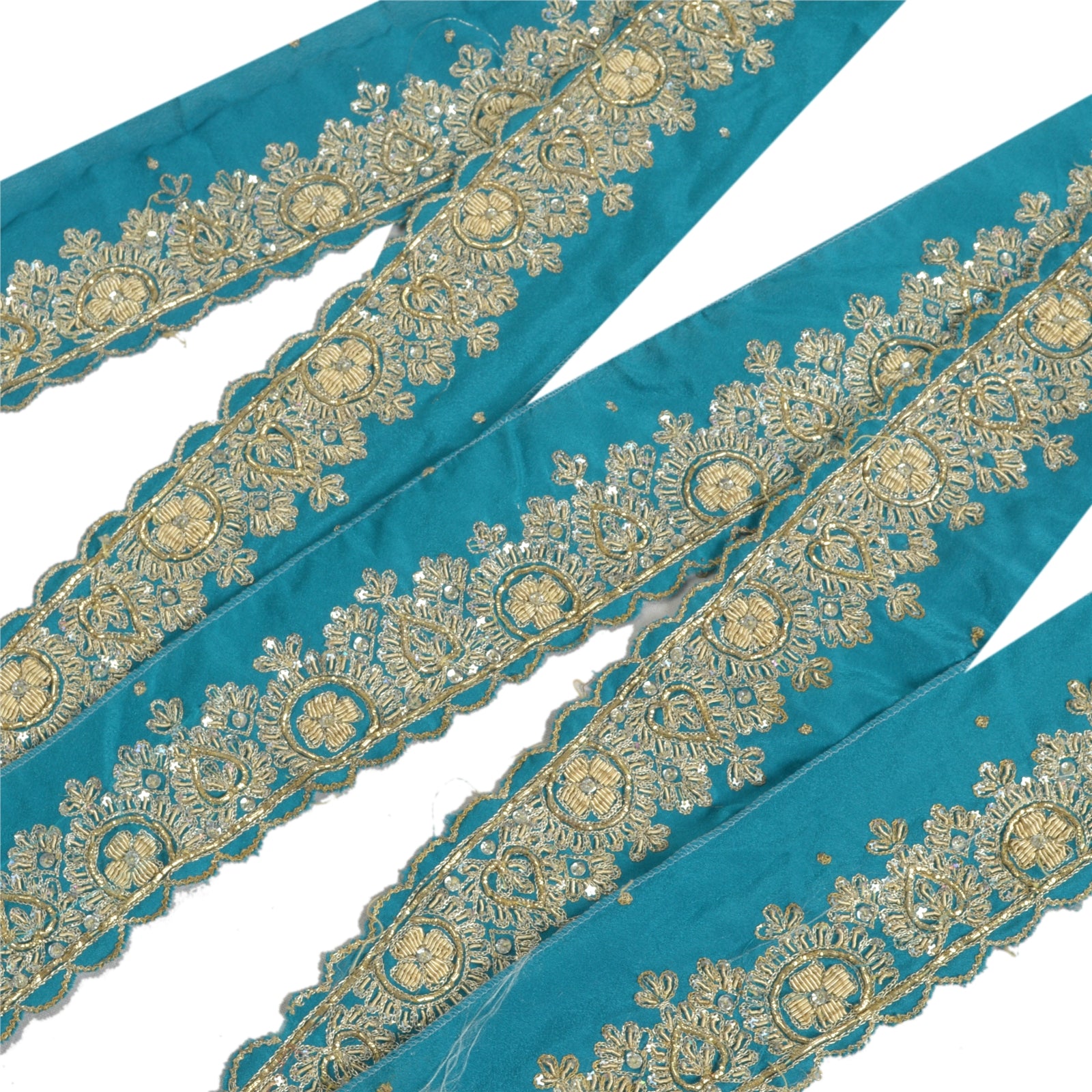 Sanskriti Vintage Sari Border Hand Beaded 1 Yd Indian Trim Sewing Green Lace