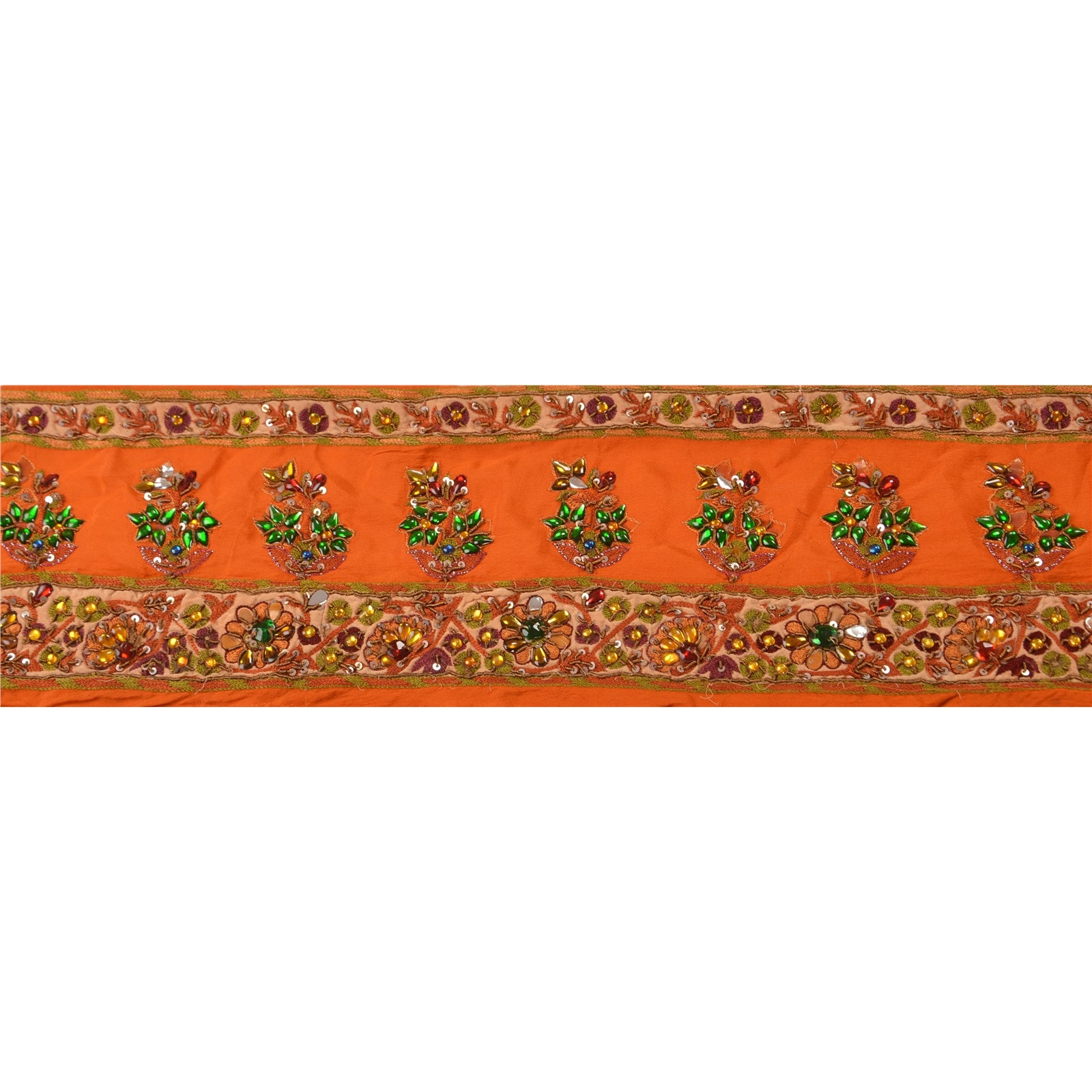 Sanskriti Vintage Sari Border Hand Beaded 1 Yd Indian Trim Sewing Orange Lace