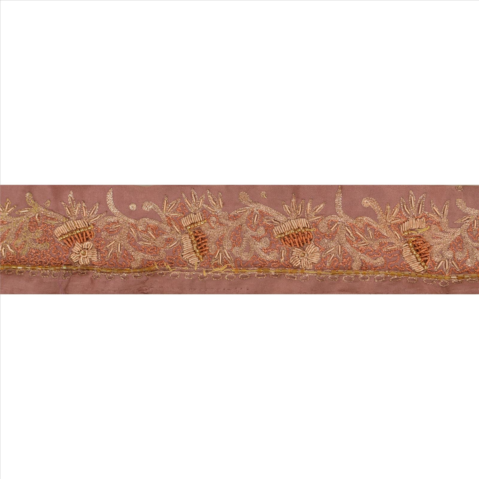 Sanskriti Vintage Sari Border Hand Beaded 1 Yd Indian Trim Sewing Pink Lace