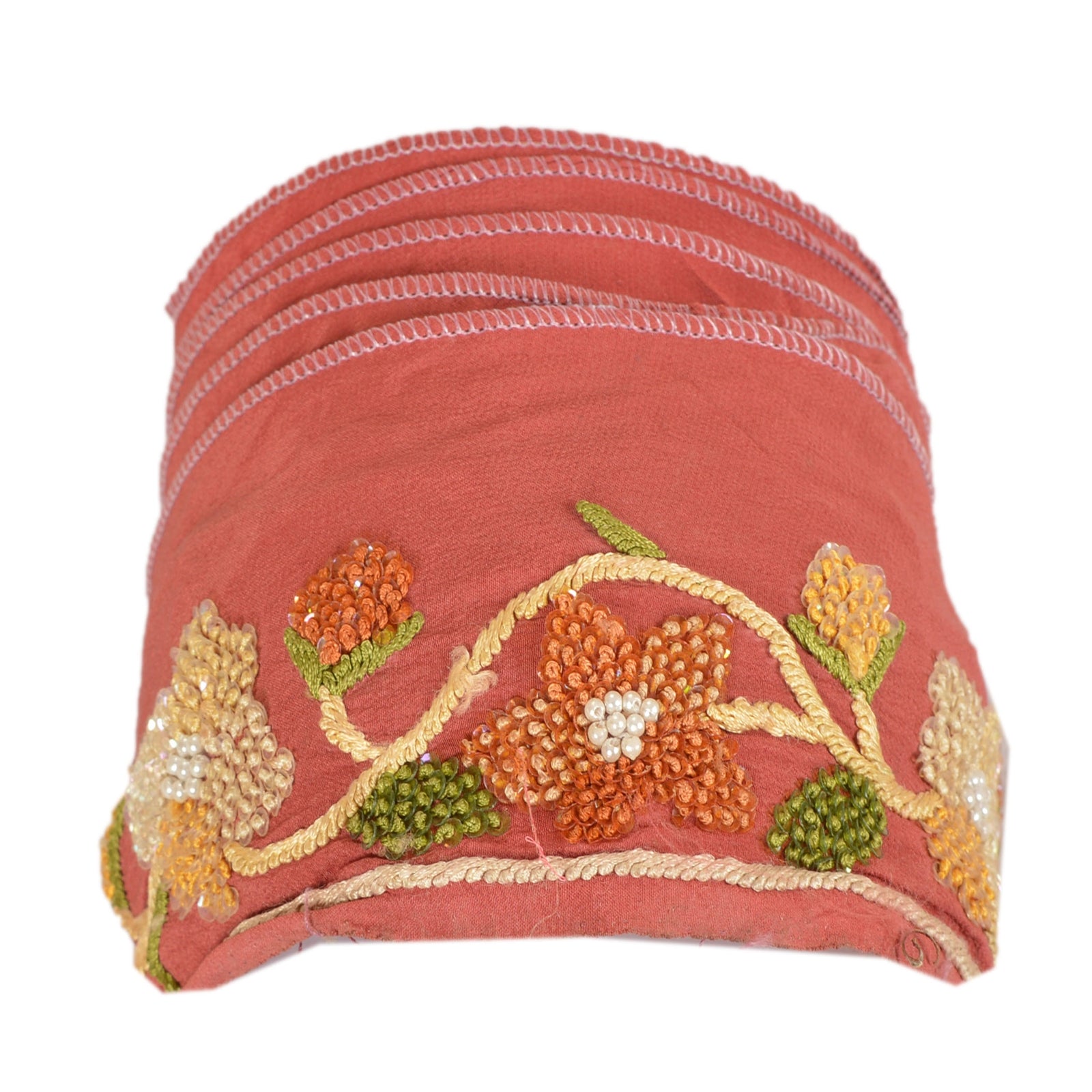 Fabulous crepe silk hand beaded sari border in pinkcolor highlighting sequins work. Border has beautiful floral patterns painstakingly hand beaded with multi color sequins & thread work, cream pearl like bead work. Further you can see fine detailing with French knot design . WOW!! an awesome one of a kind versatile border. 1 Quantity = 1 Yard