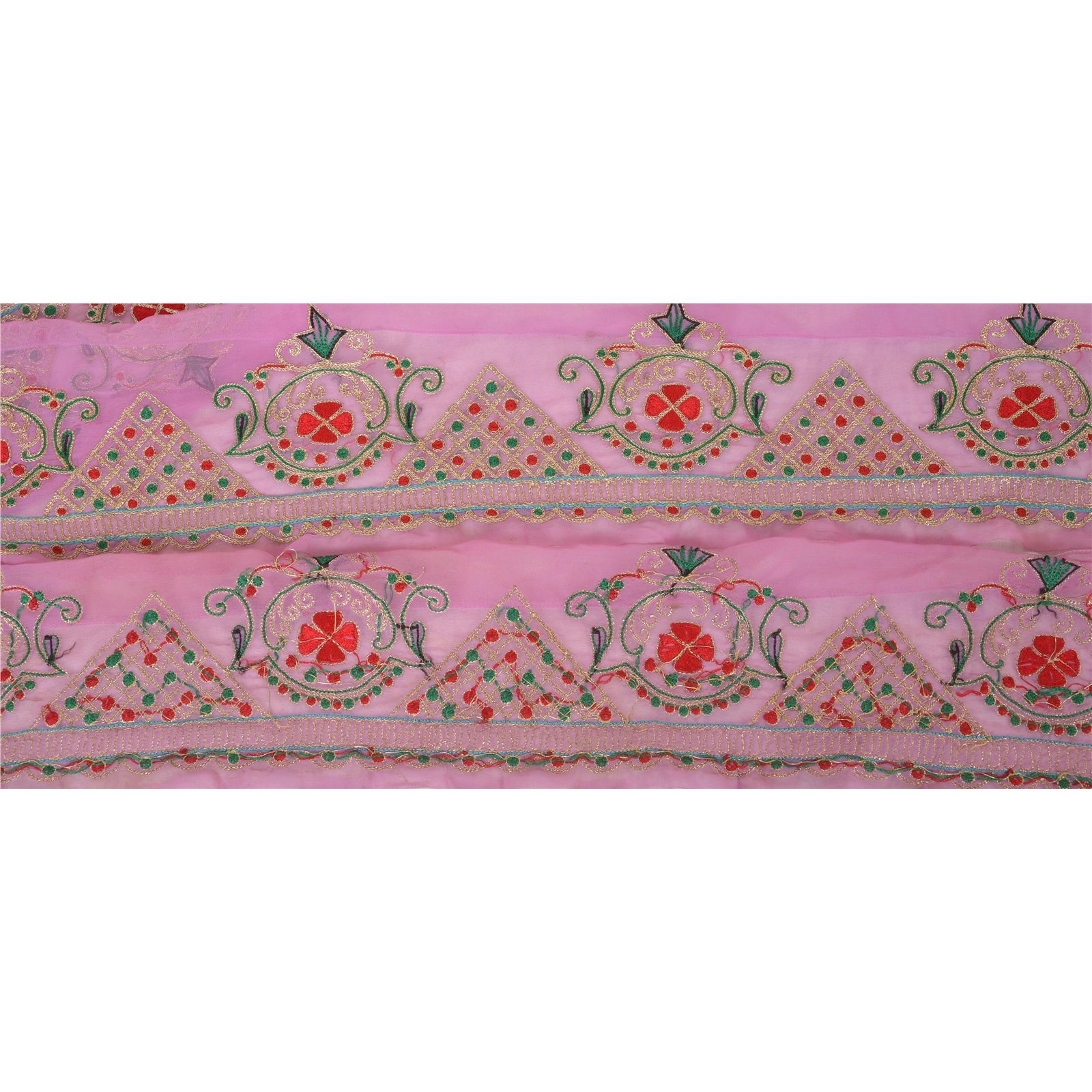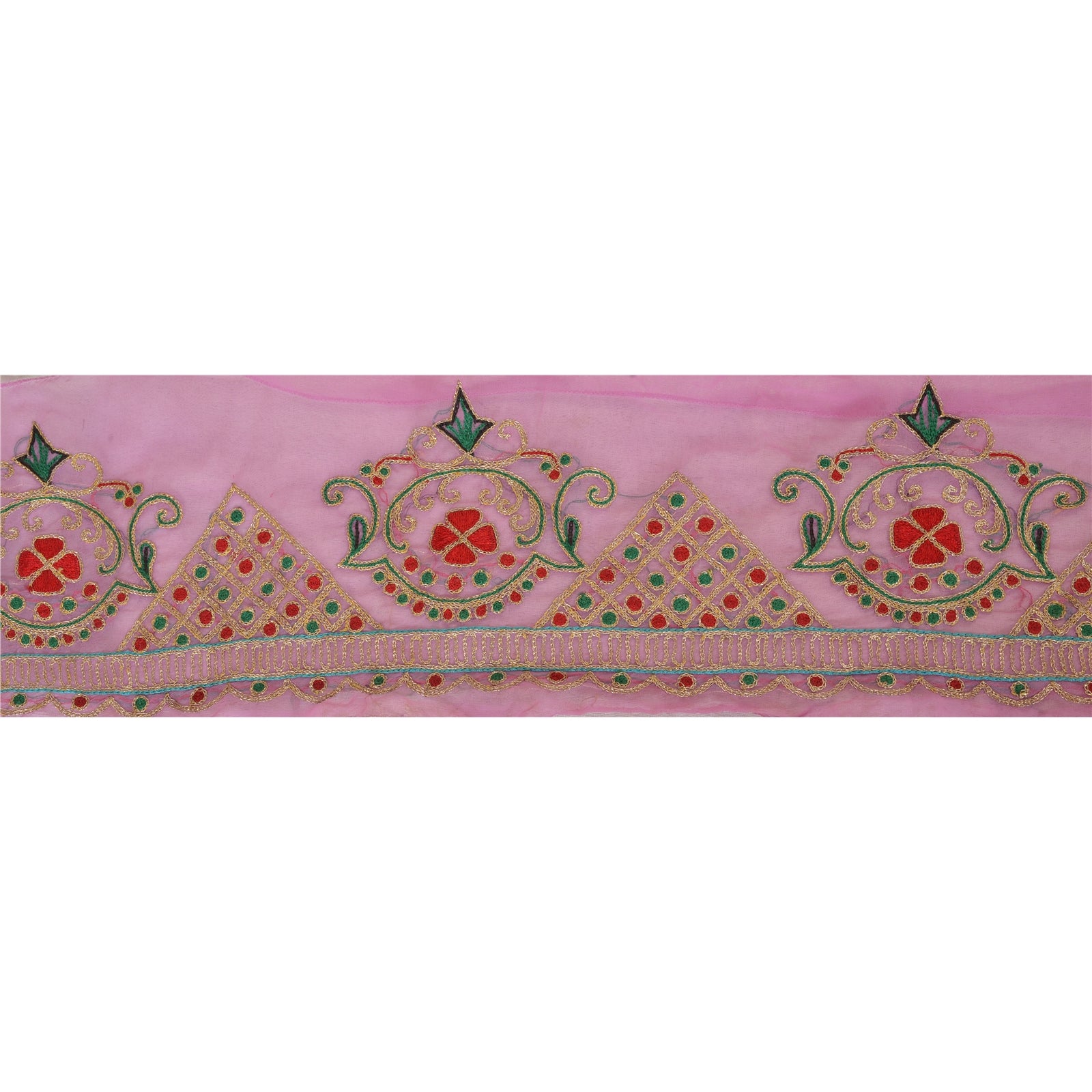 Sanskriti Vintage Sari Border Hand Beaded 1 Yd Indian Trim Sewing Pink Zari Lace