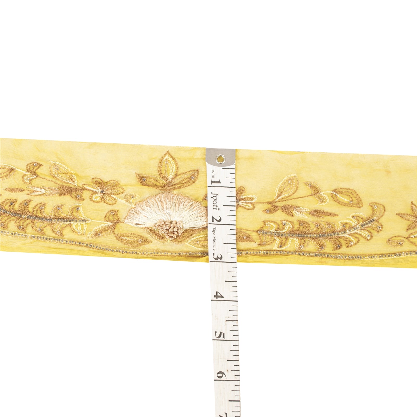 Sanskriti Vintage Sari Border Hand Beaded 1 YD Trim Lemon Lace Wrap Ribbon 3 W