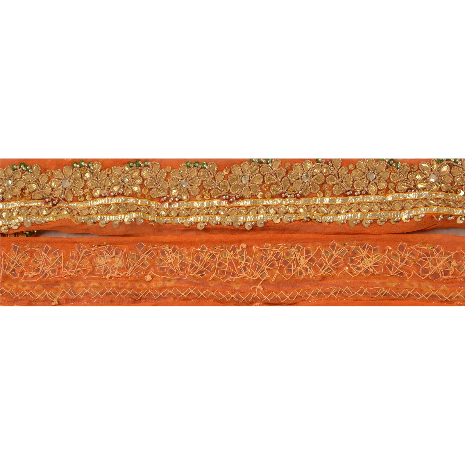 Sanskriti Vintage Sari Border Hand Beaded 1 Yd Trim Sewing Orange Craft Lace
