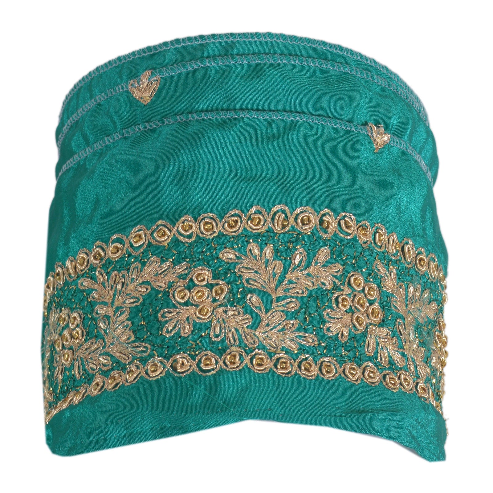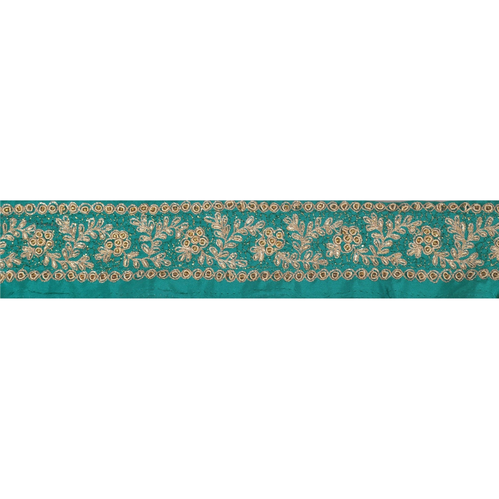 Sanskriti Vintage Sari Border Hand Beaded 1Yd Indian Trim Sewing Green Zari Lace