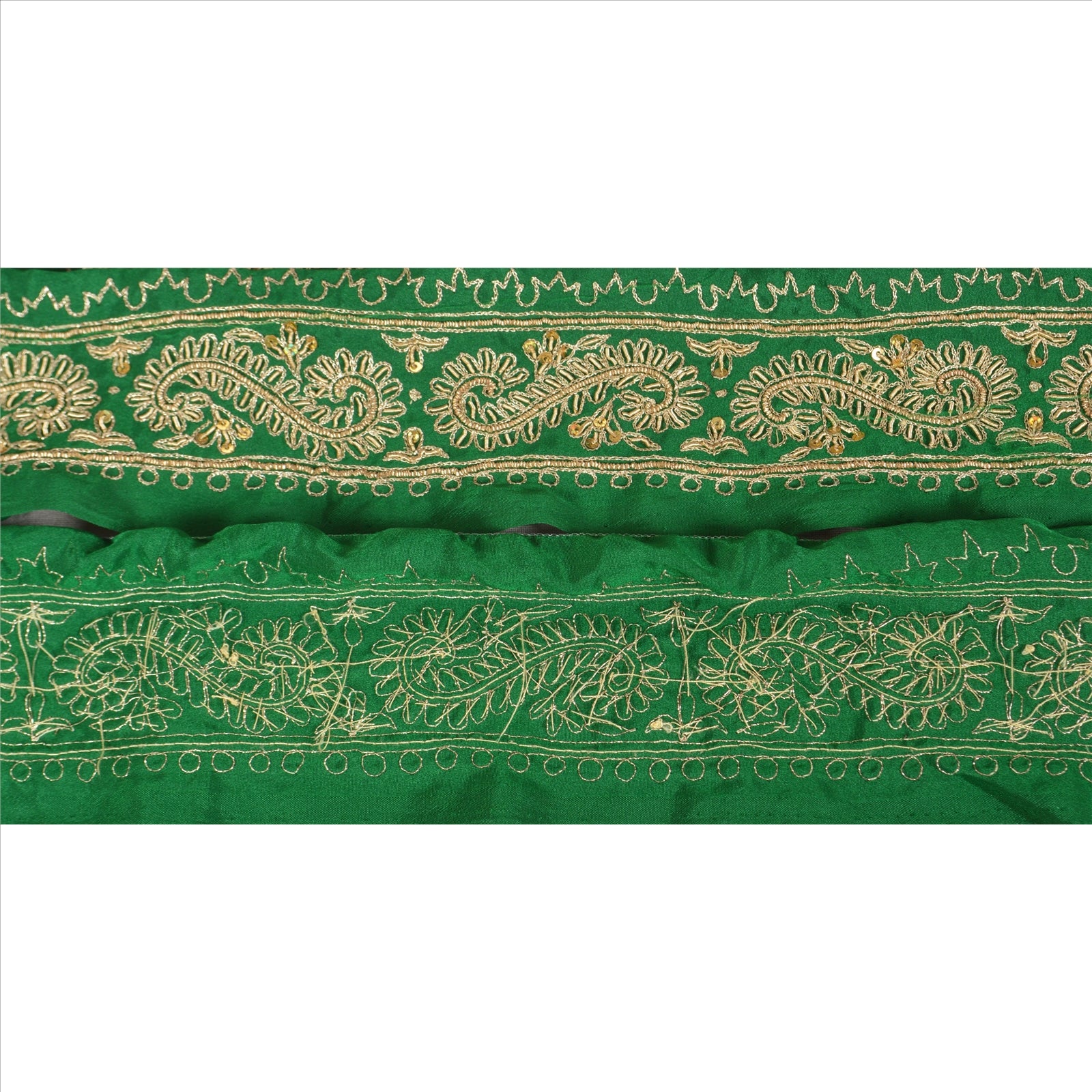 Sanskriti Vintage Sari Border Hand Beaded 1Yd Indian Trim Sewing Green Zari Lace