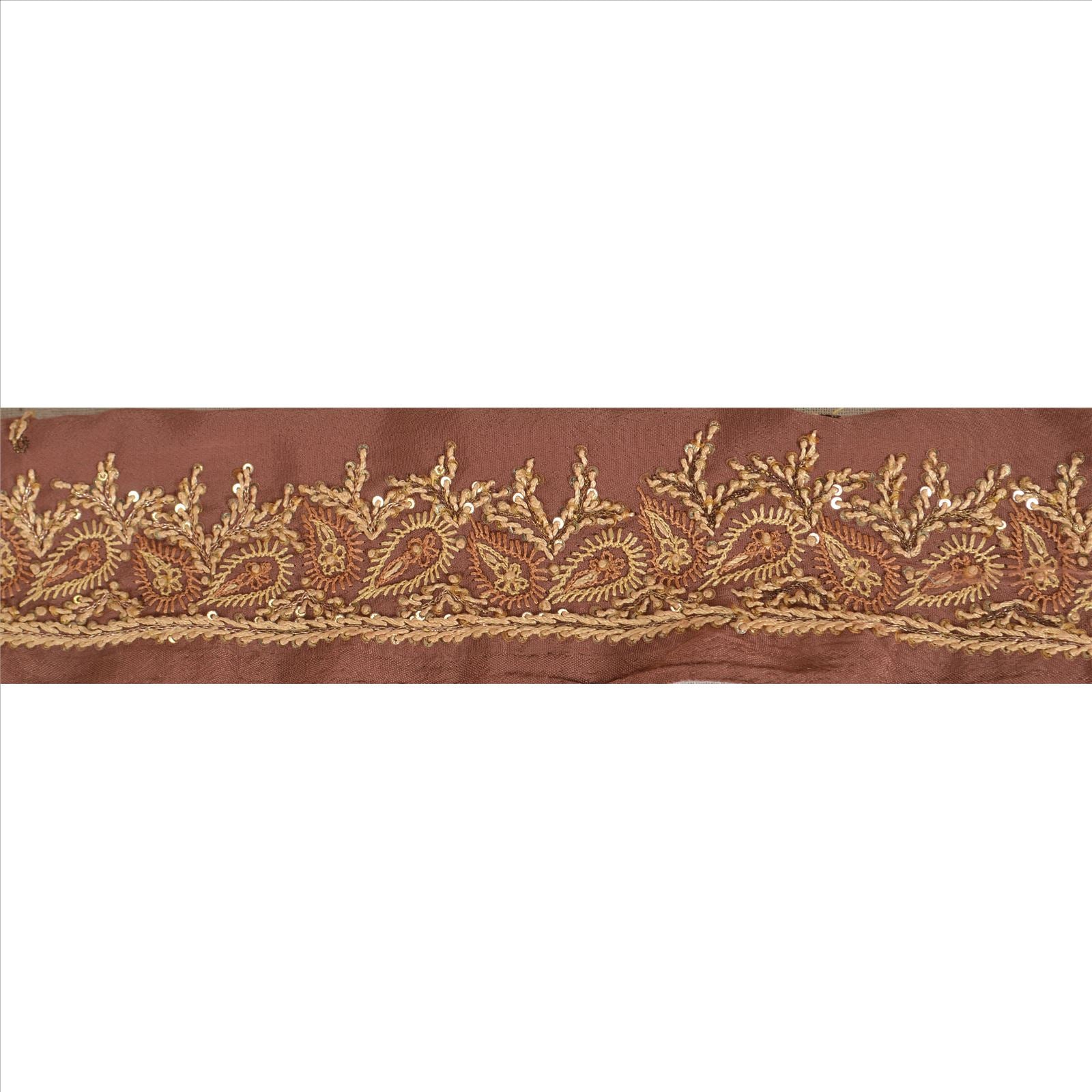 Sanskriti Vintage Sari Border Hand Beaded 1 Yard Indian Trims Sewing Brown Lace