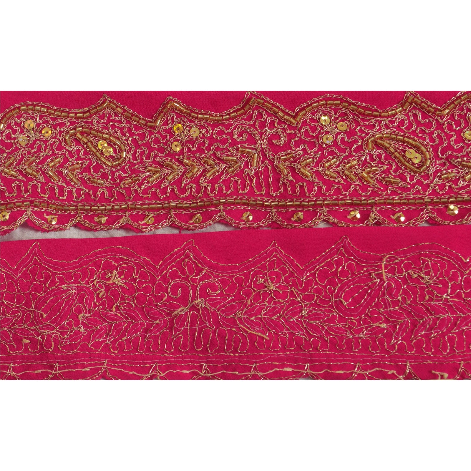 Sanskriti Vintage Sari Border Hand Beaded 1 Yd Indian Trim Sewing Pink Lace