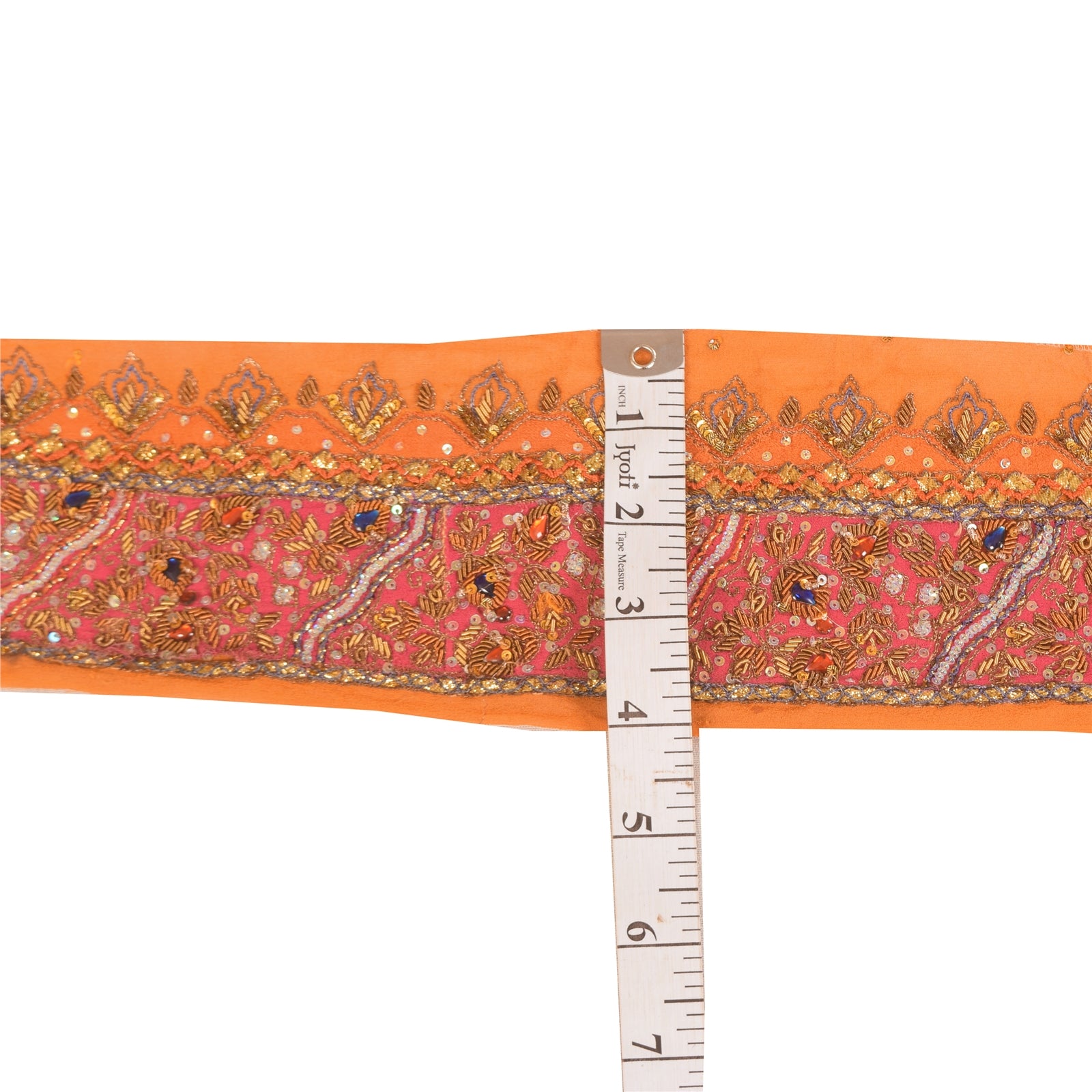SANSKRITI VINTAGE SARI BORDER HAND BEADED CRAFT 1 YD TRIMS LACE 3W ORANGE PINK
