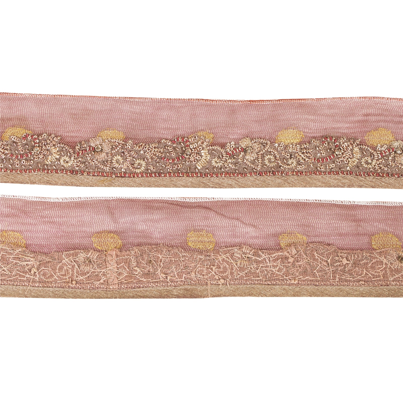 Sanskriti Vintage Sari Border Hand Beaded Dabka 1YD Trims 1"W Pink Ribbon Lace