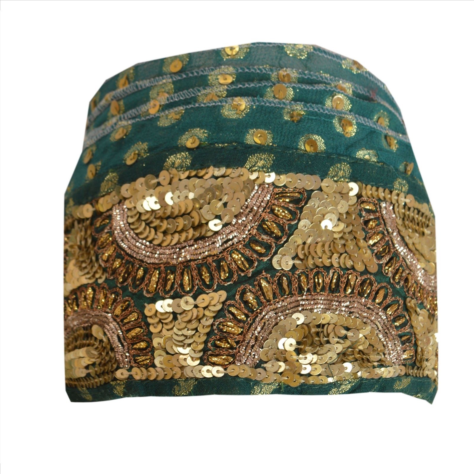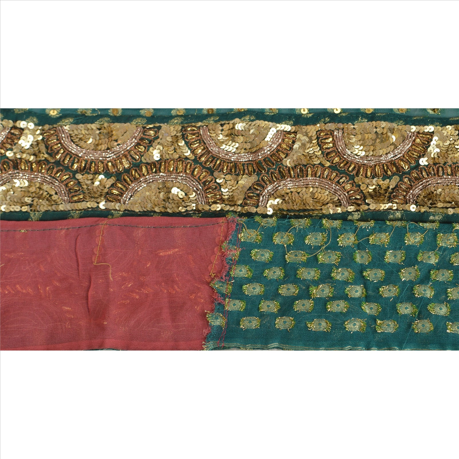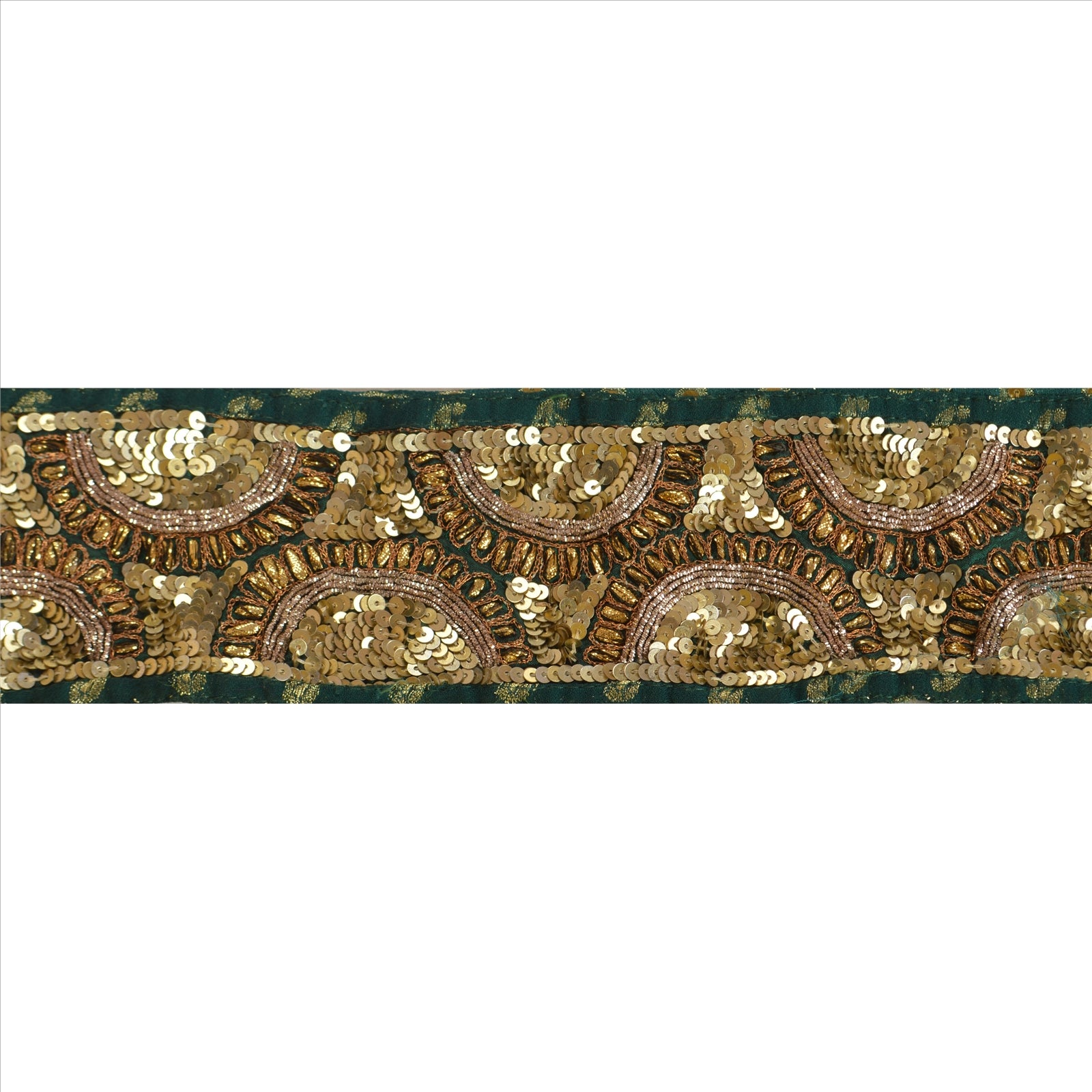 Sanskriti Vintage Sari Border Hand Beaded Woven 1 Yd Trim Sewing Green Lace