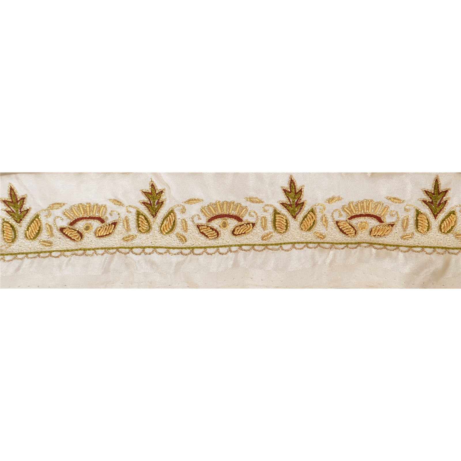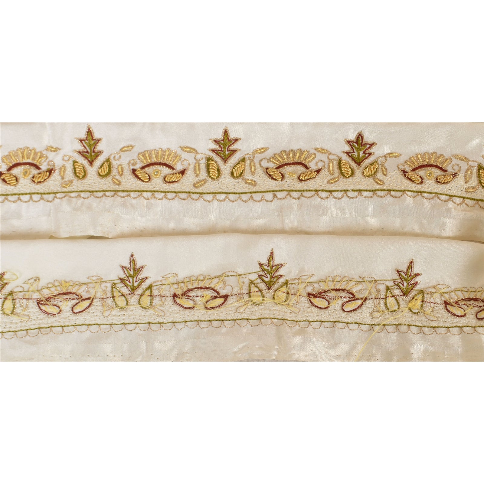 Sanskriti Vintage Sari Border Hand Embroidered 1 Yard Trim Sewing White Lace