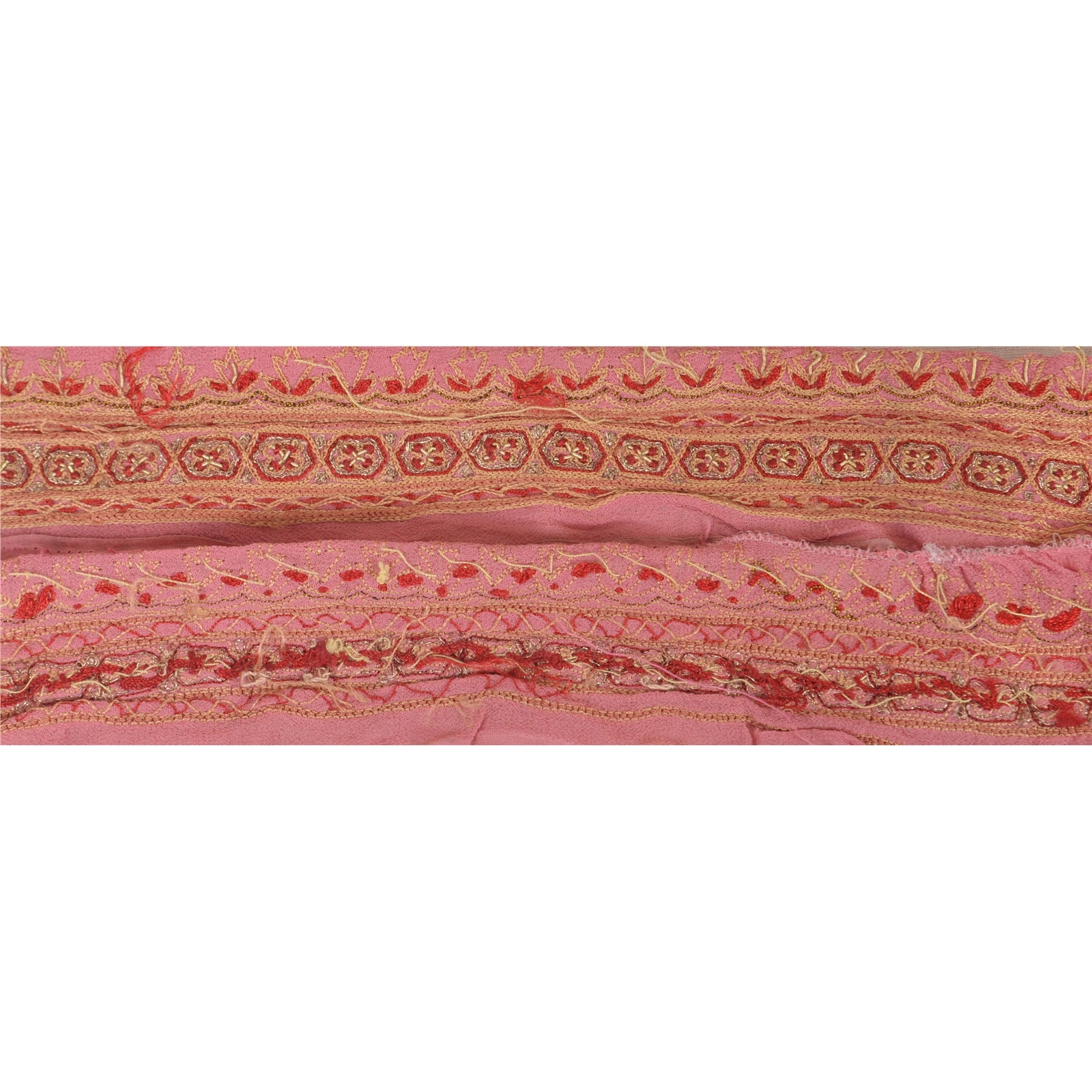 Sanskriti Vintage Sari Border Hand Embroidered 1 Yd Indian Trim Ribbon Pink Lace