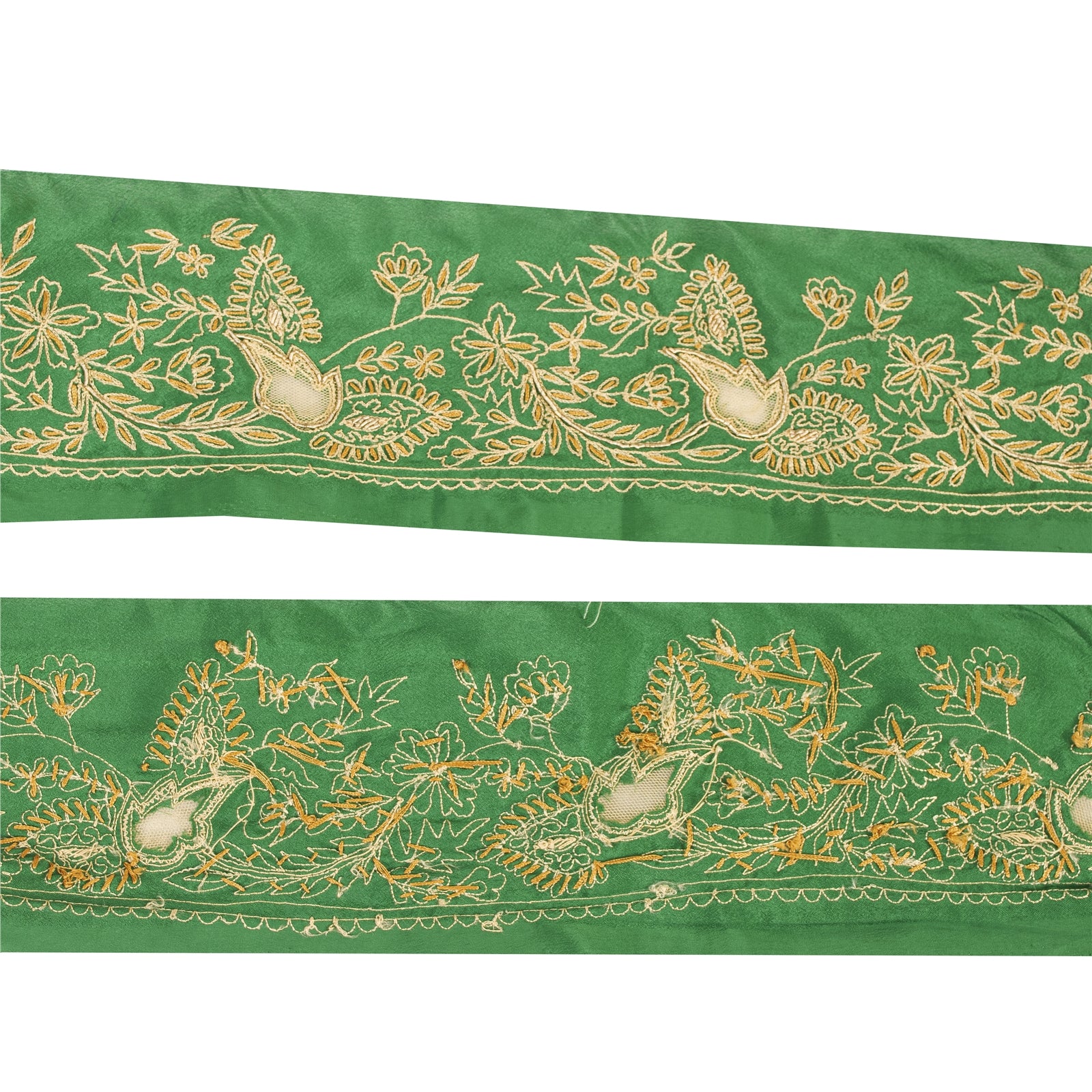 Sanskriti Vintage Sari Border Hand Embroidered 1 YD Trim Green Craft Lace 3.5"W
