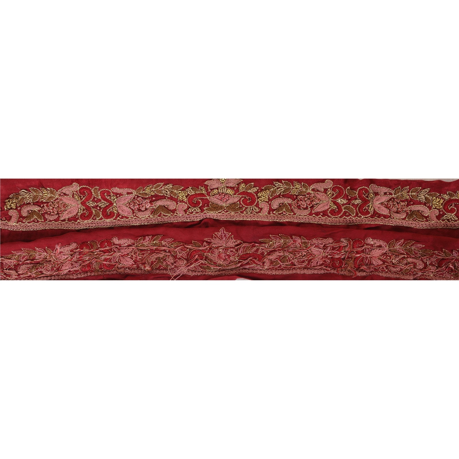 Sanskriti Vintage Sari Border Hand Embroidered 1 Yd Trim Ribbon Dark Red Lace