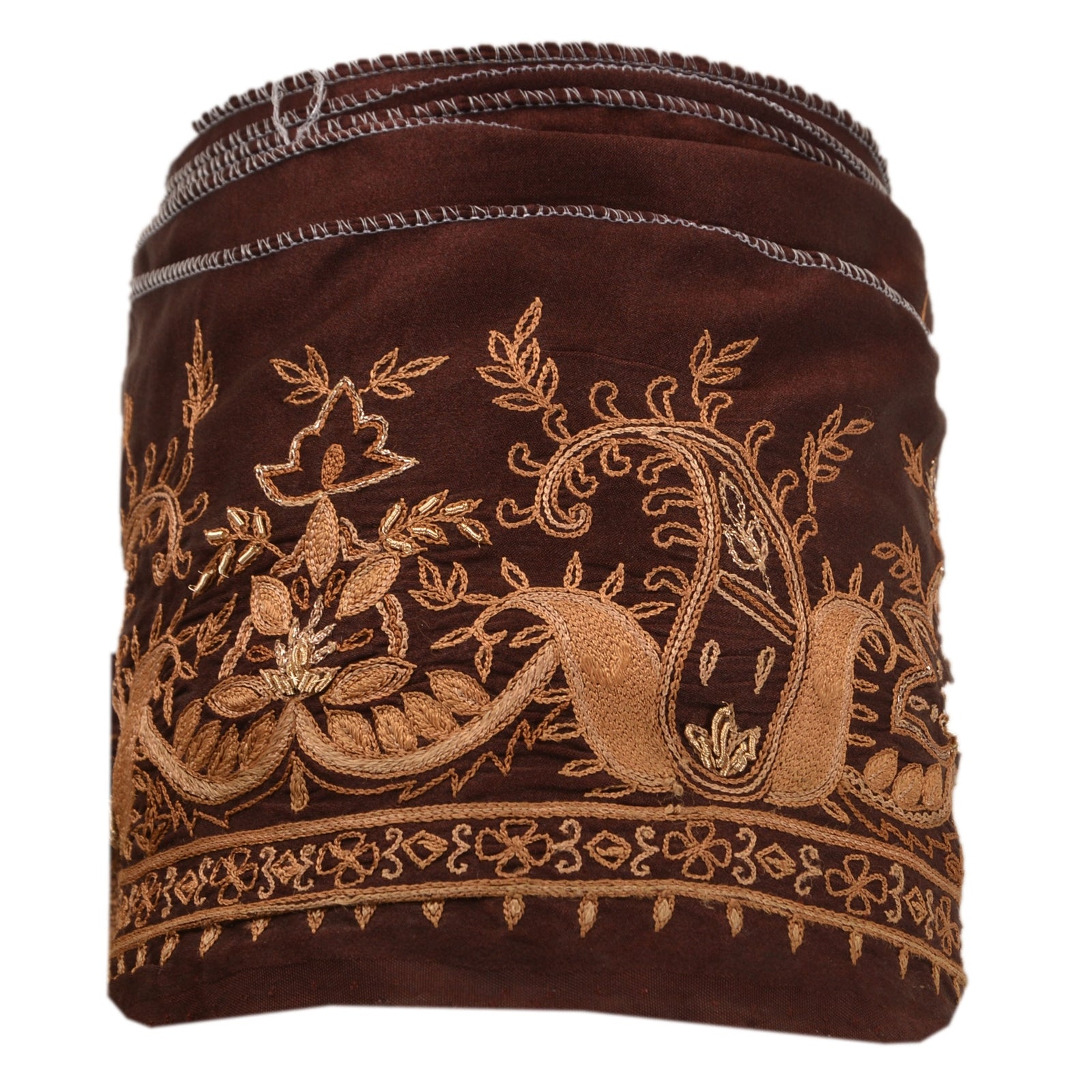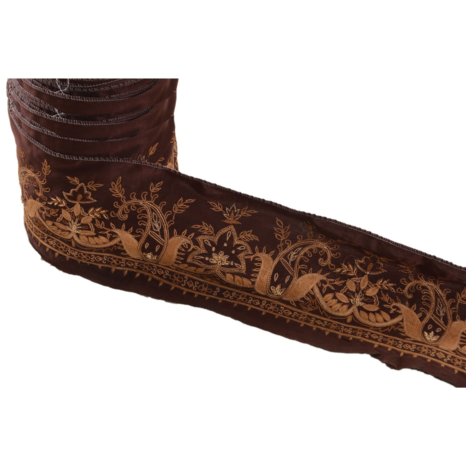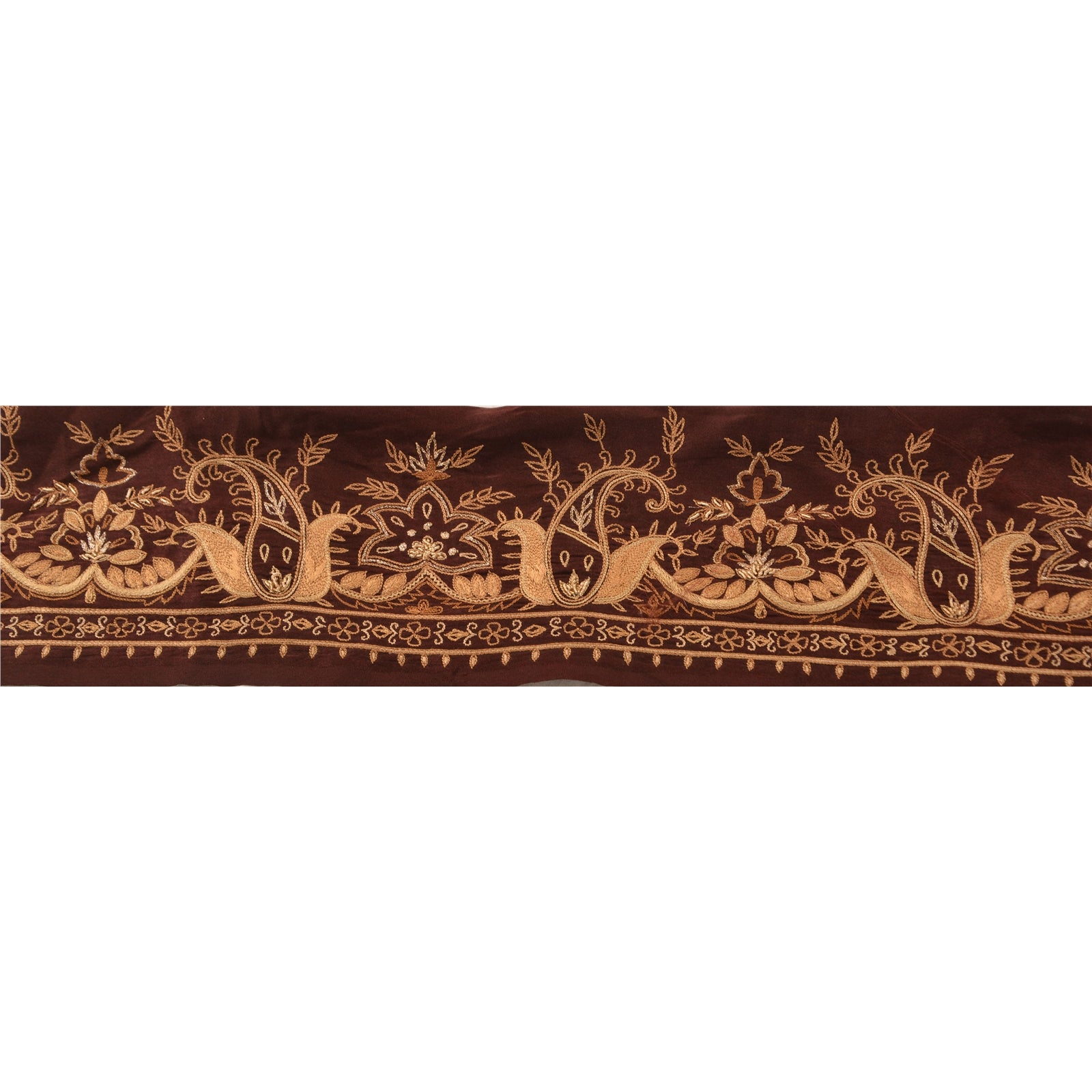 Sanskriti Vintage Sari Border Hand Embroidered 1 Yd Trim Sewing Brown Craft Lace