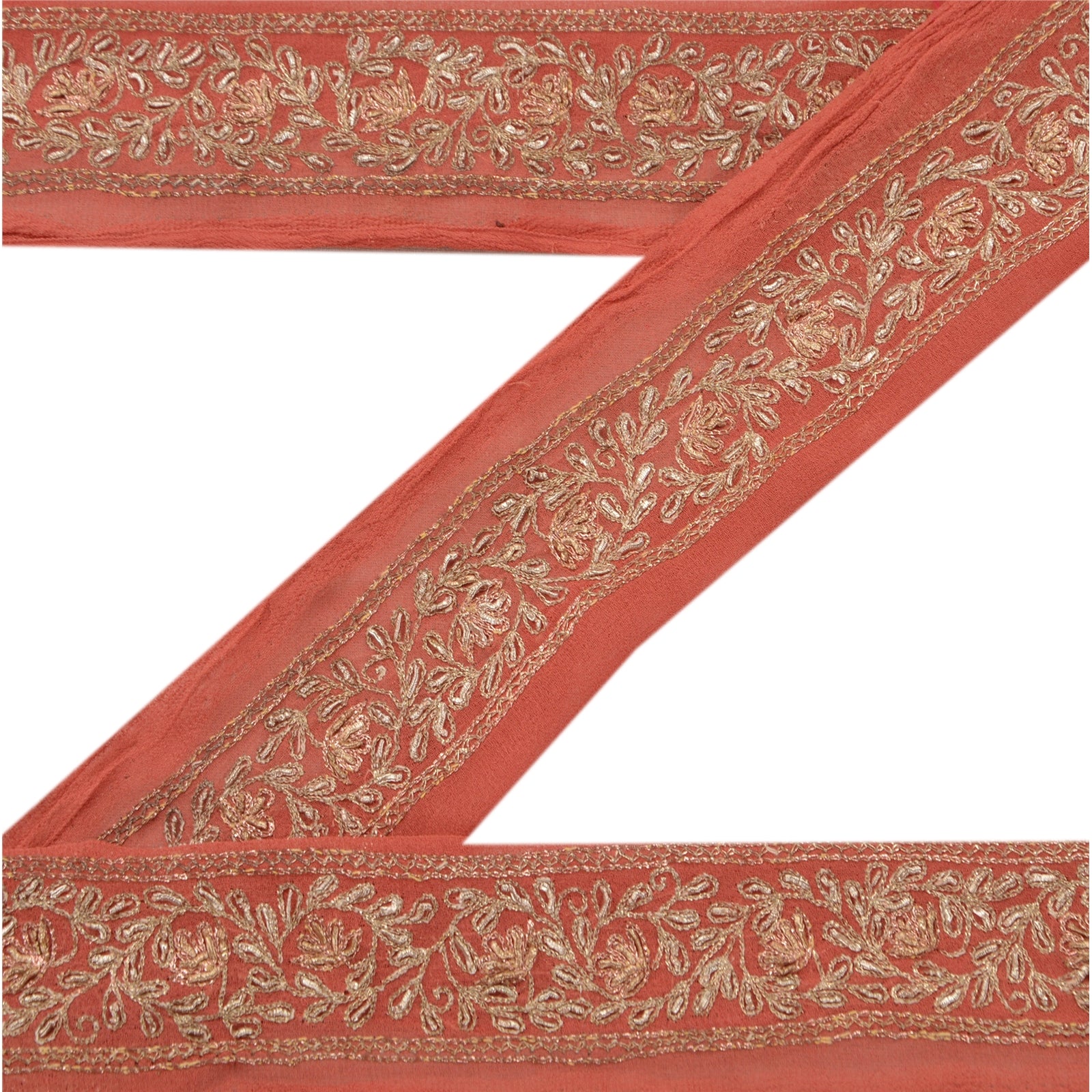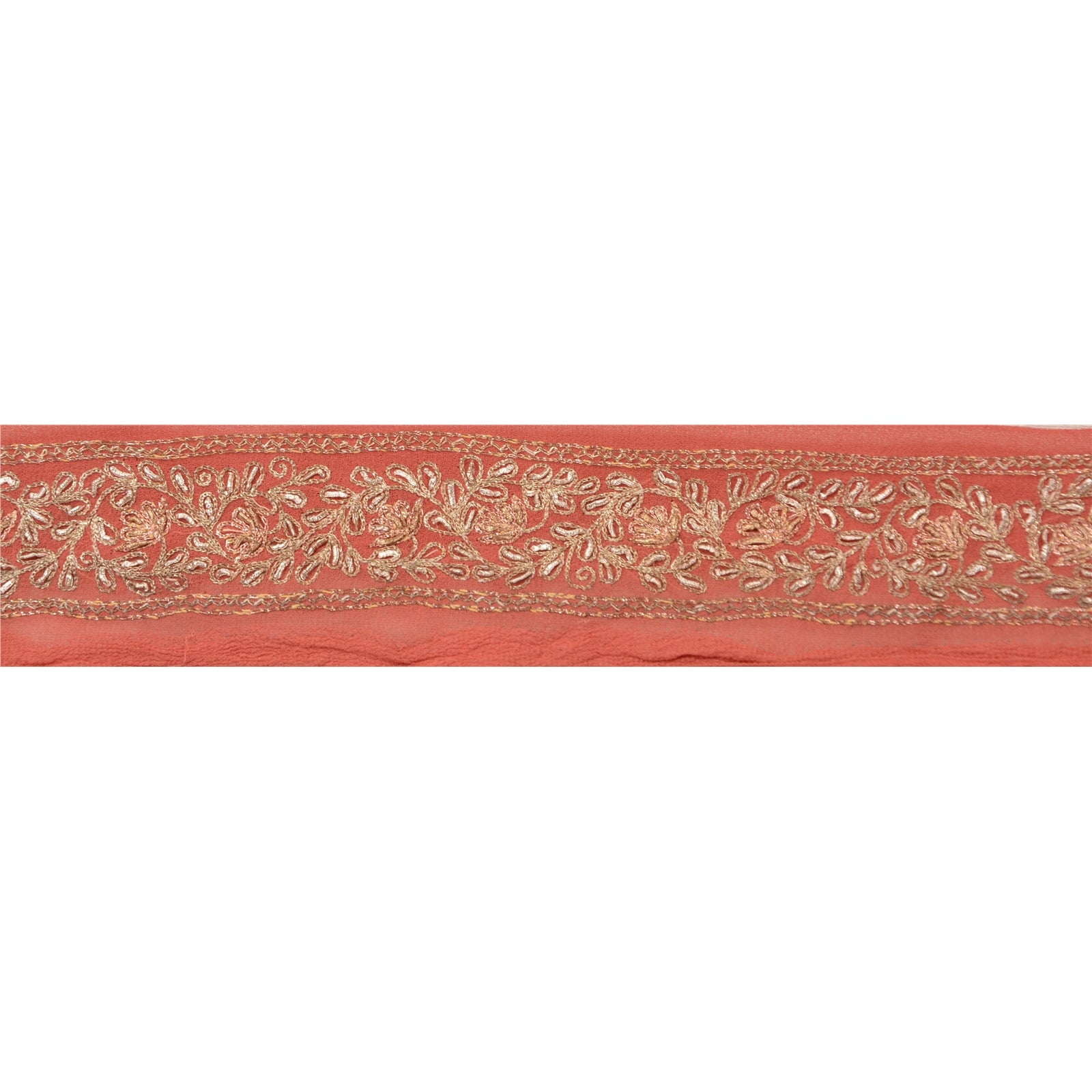 Sanskriti Vintage Sari Border Hand Embroidered 1 Yd Trim Sewing Peach Craft Lace