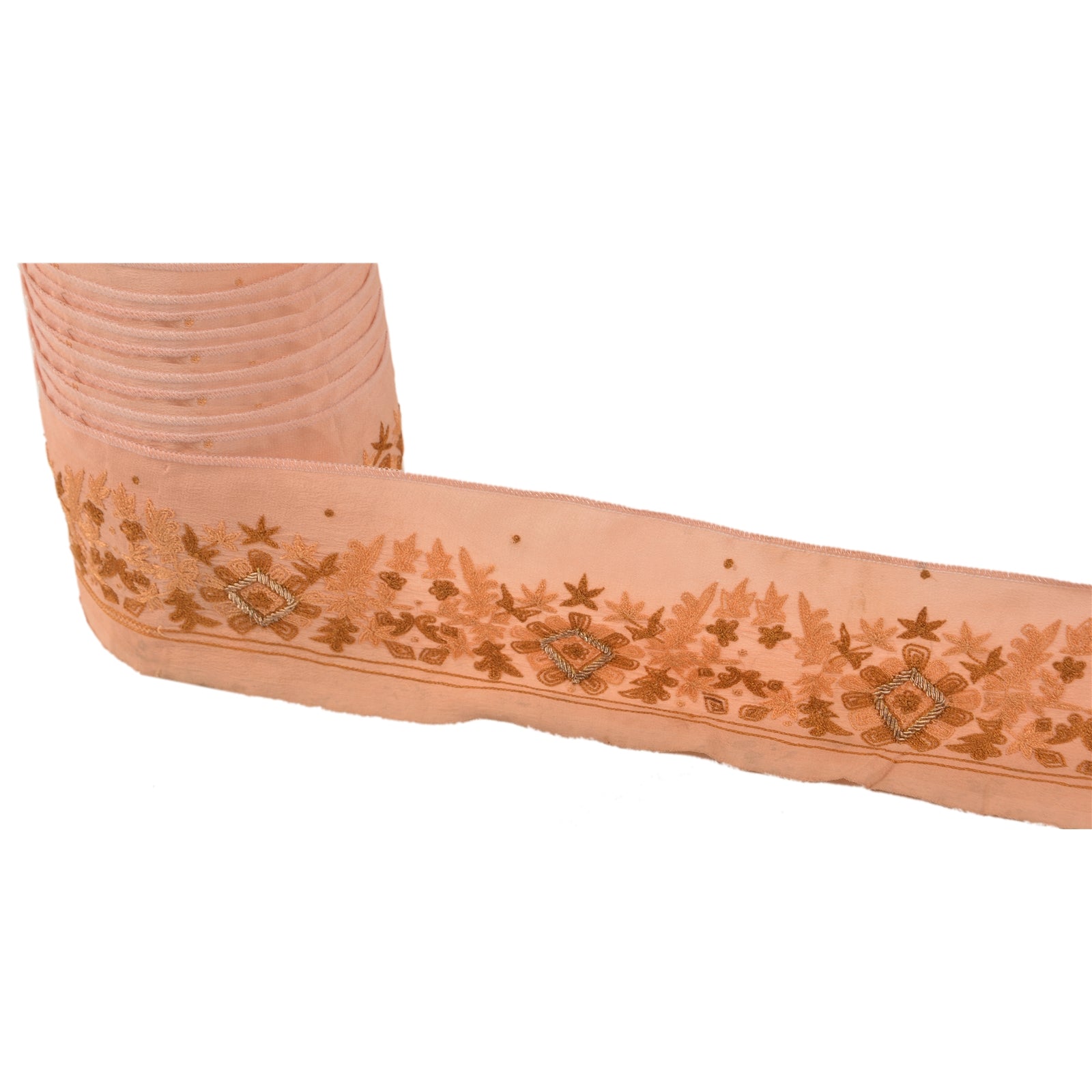 Sanskriti Vintage Sari Border Hand Embroidered 1 YD Zardozi Peach Craft Lace