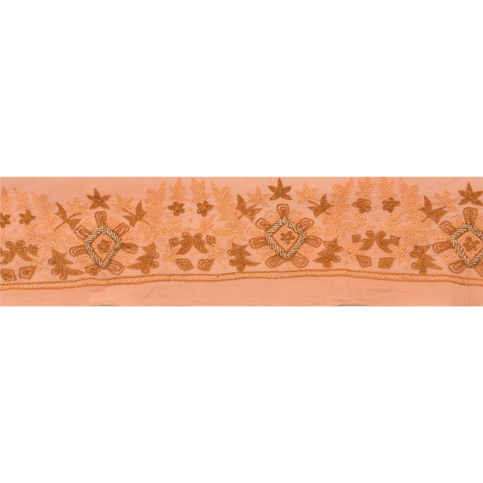 THE ITEM COLOR OR SHADE MAY BE DARKER OR LIGHTER THAN THE PICTURE.' Amazing crepe silk hand embroidered sari border in peach color highlighting zardozi work. Border has beautiful floral & paisley patterns painstakingly embroidered with gold zardozi work . Further you can see fine detailing with peach/brown thread work. WOW!! an awesome one of a kind versatile border. 1 Quantity = 1 Yard International buyers please note: Import duties, taxes, and charges are not included in the item price or postage cost. These charges are the buyer's responsibility. Please check with your country's customs office to determine what these additional costs will be prior to bidding or buying. Buyer will pay custom duty/tax. It is calculated and charged differently by every country. As a seller I do not have any control over it.VAT or sales tax is calculated by the platform at the time of checkout. Customs charge is payable at the time of delivery. B-12788