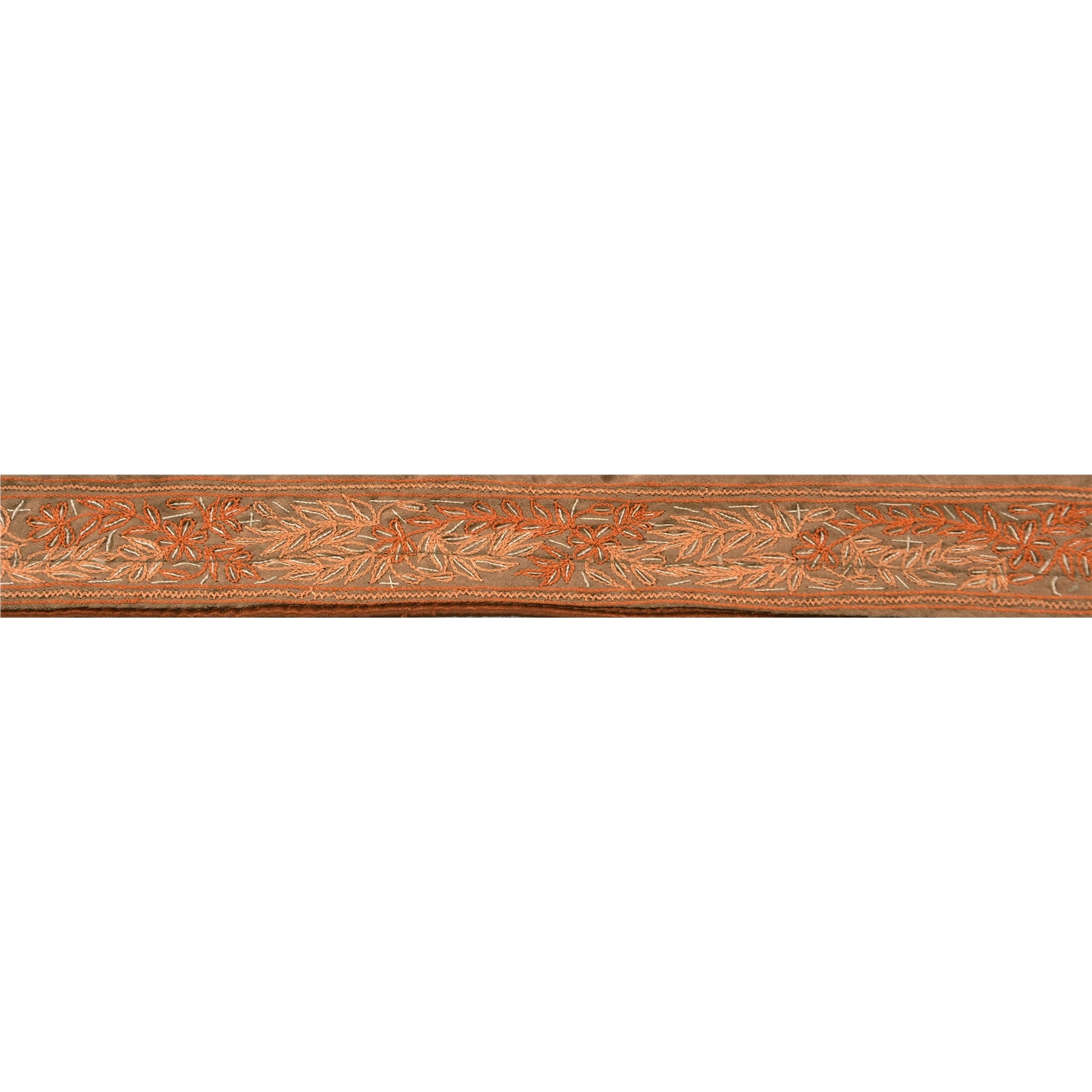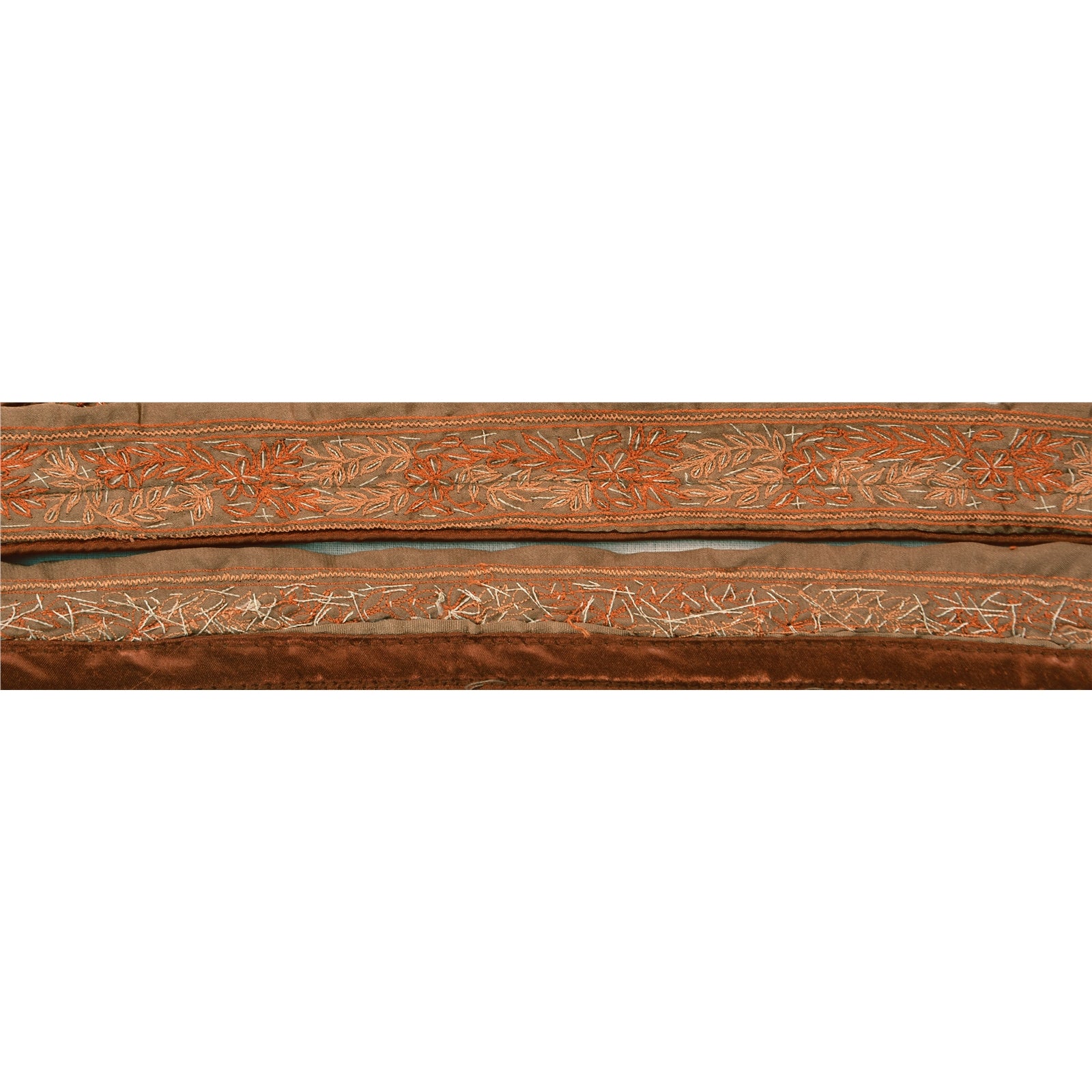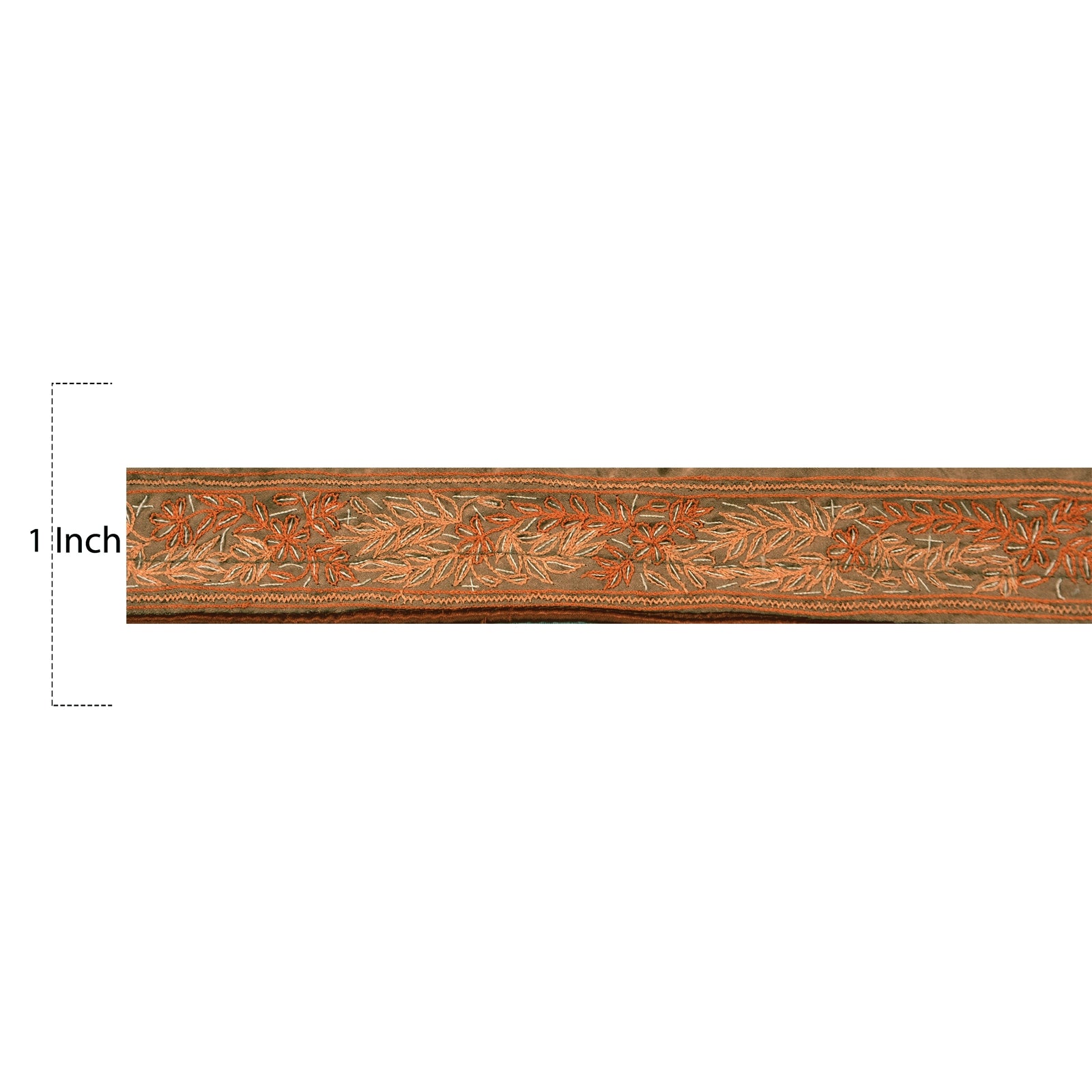 Sanskriti Vintage Sari Border Hand Embroidered 1Yd Indian Trim Ribbon Brown Lace
