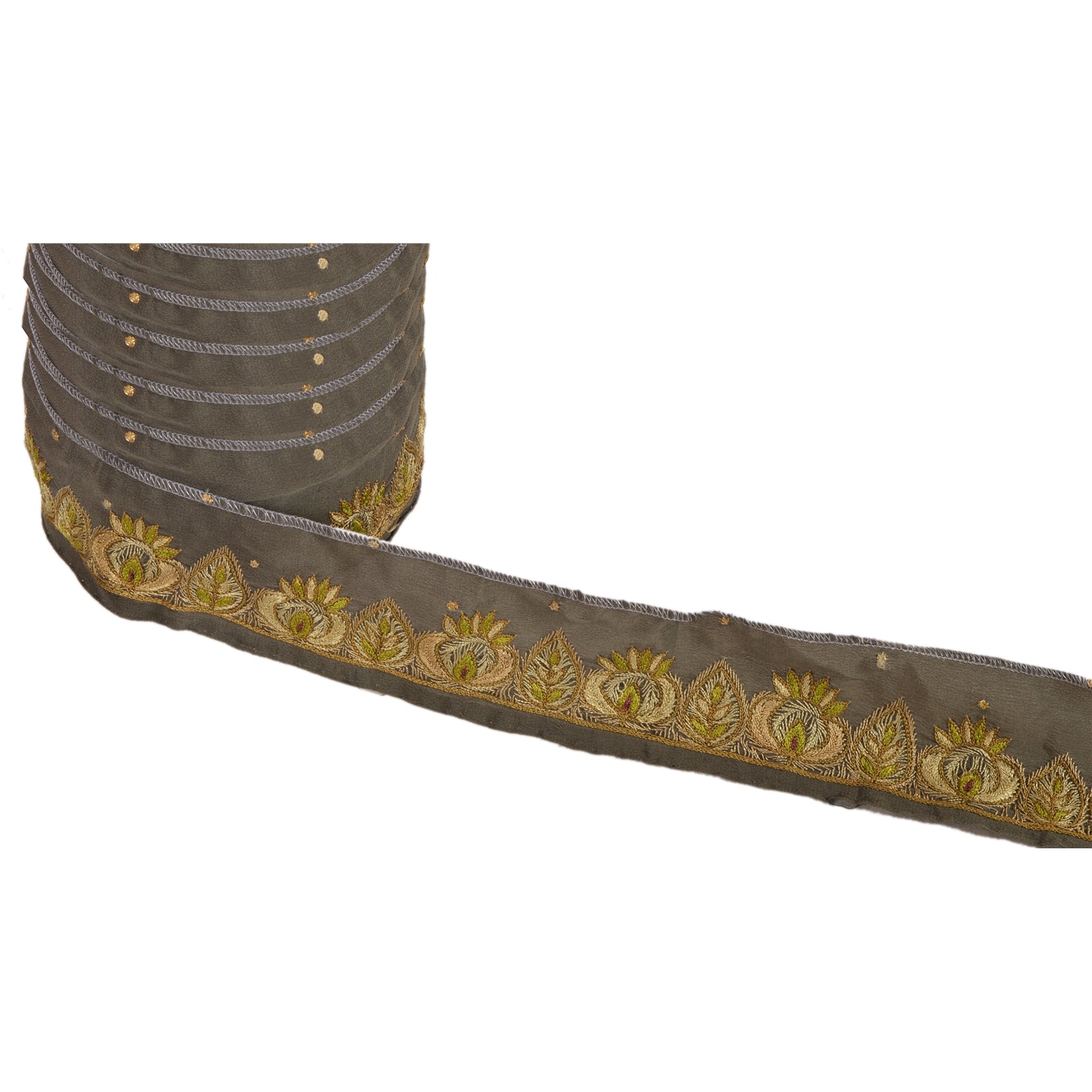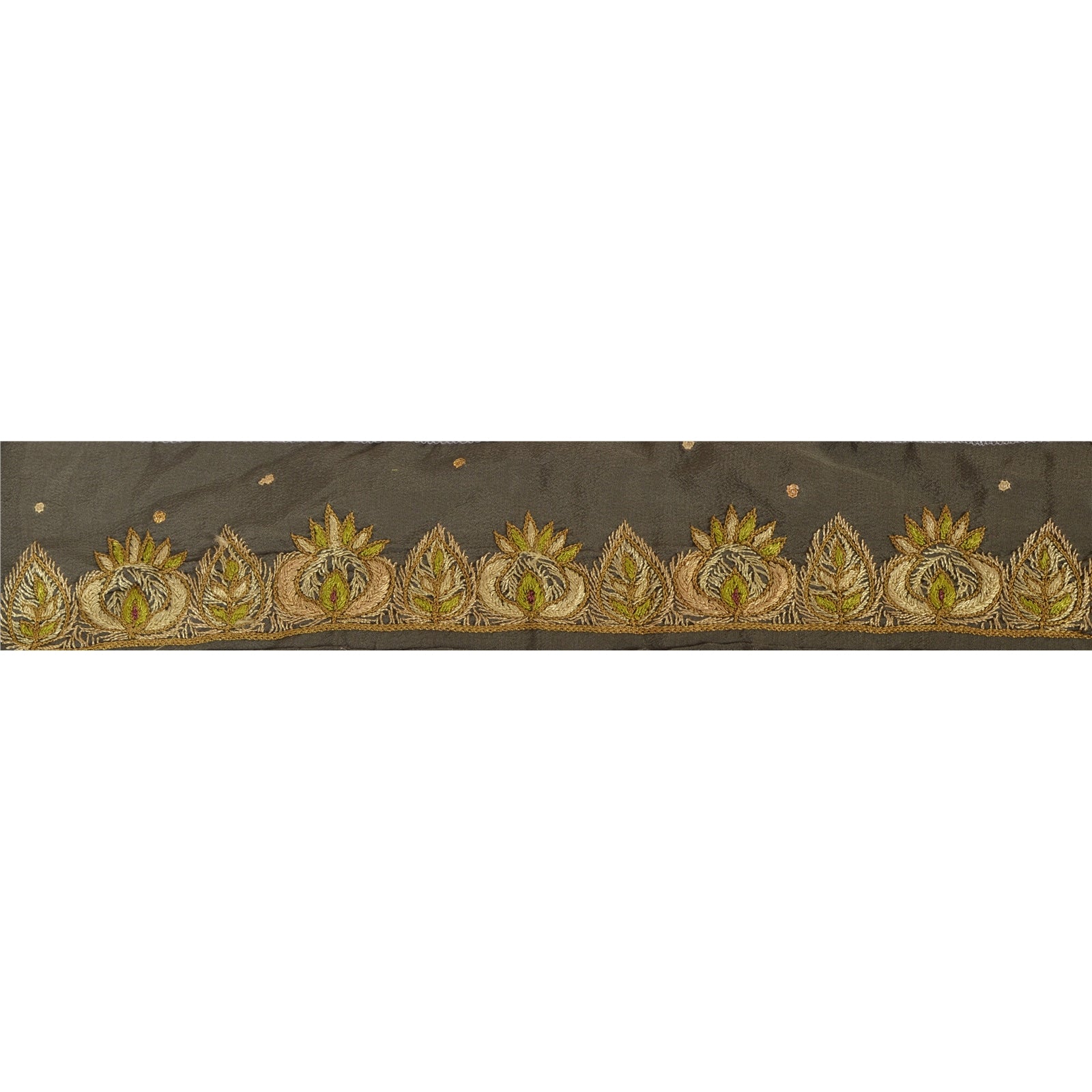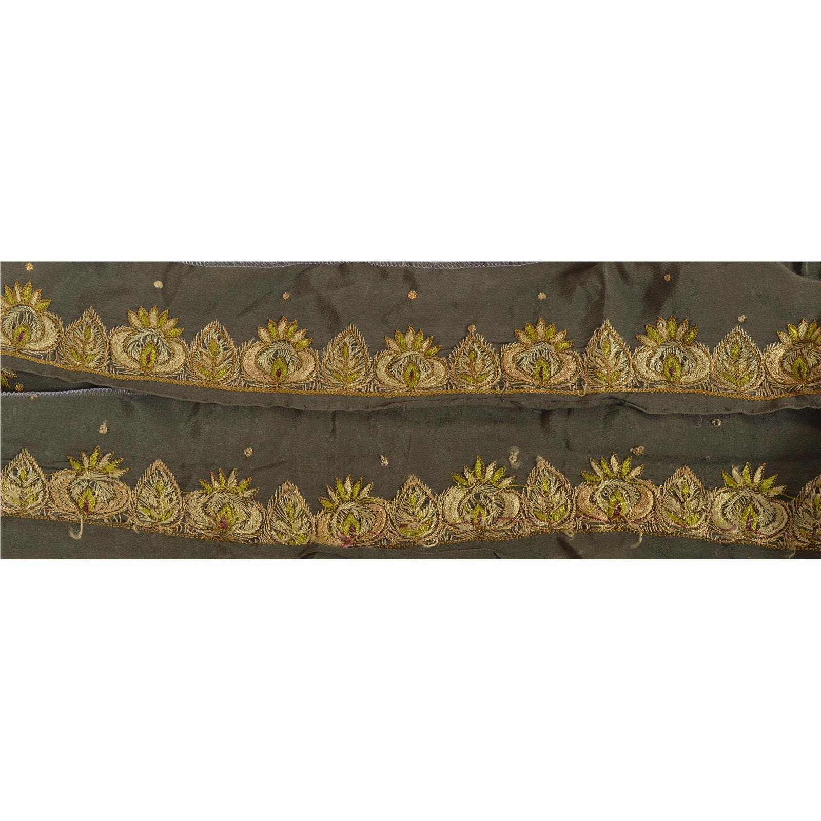 Sanskriti Vintage Sari Border Hand Embroidered 1Yd Indian Trim Ribbon Green Lace