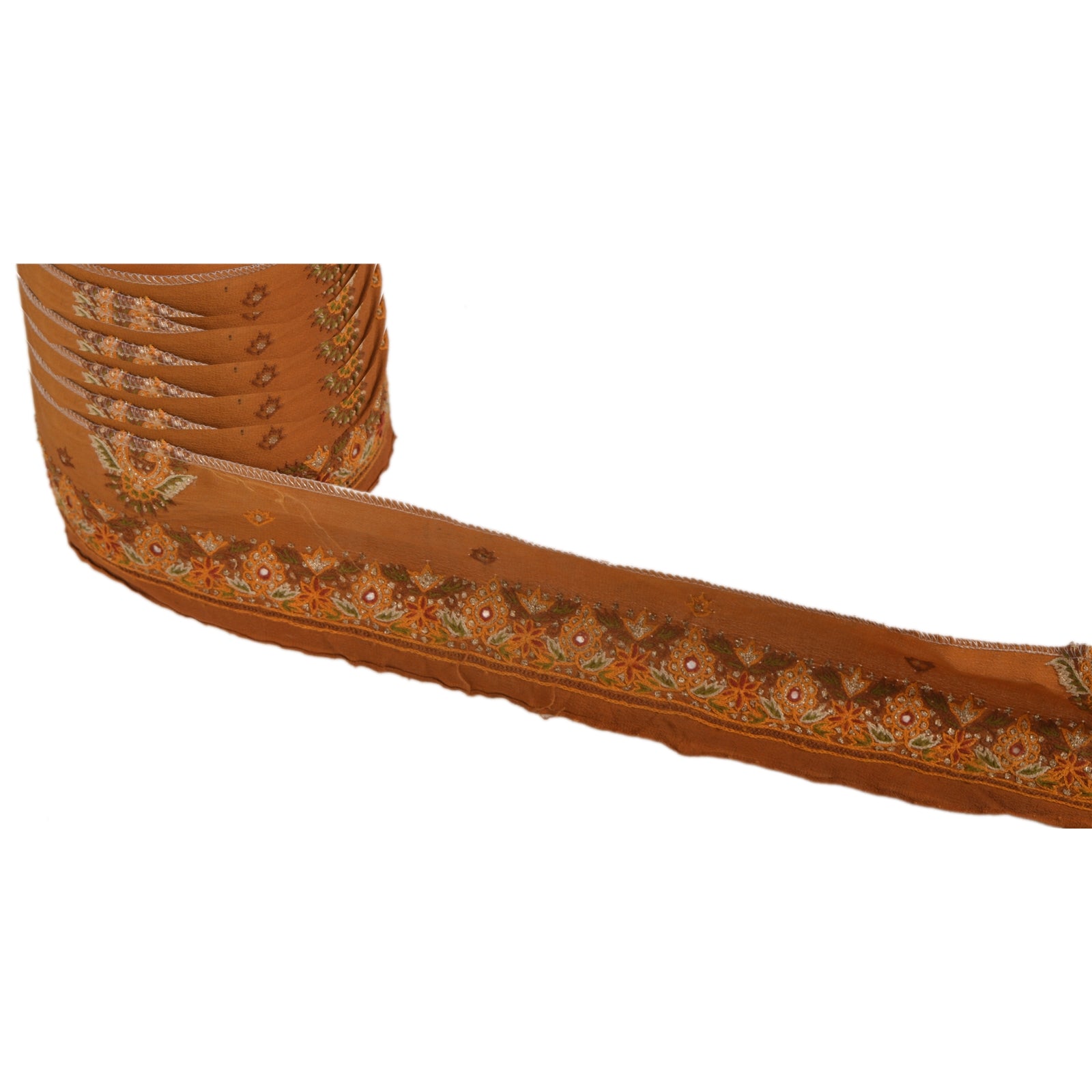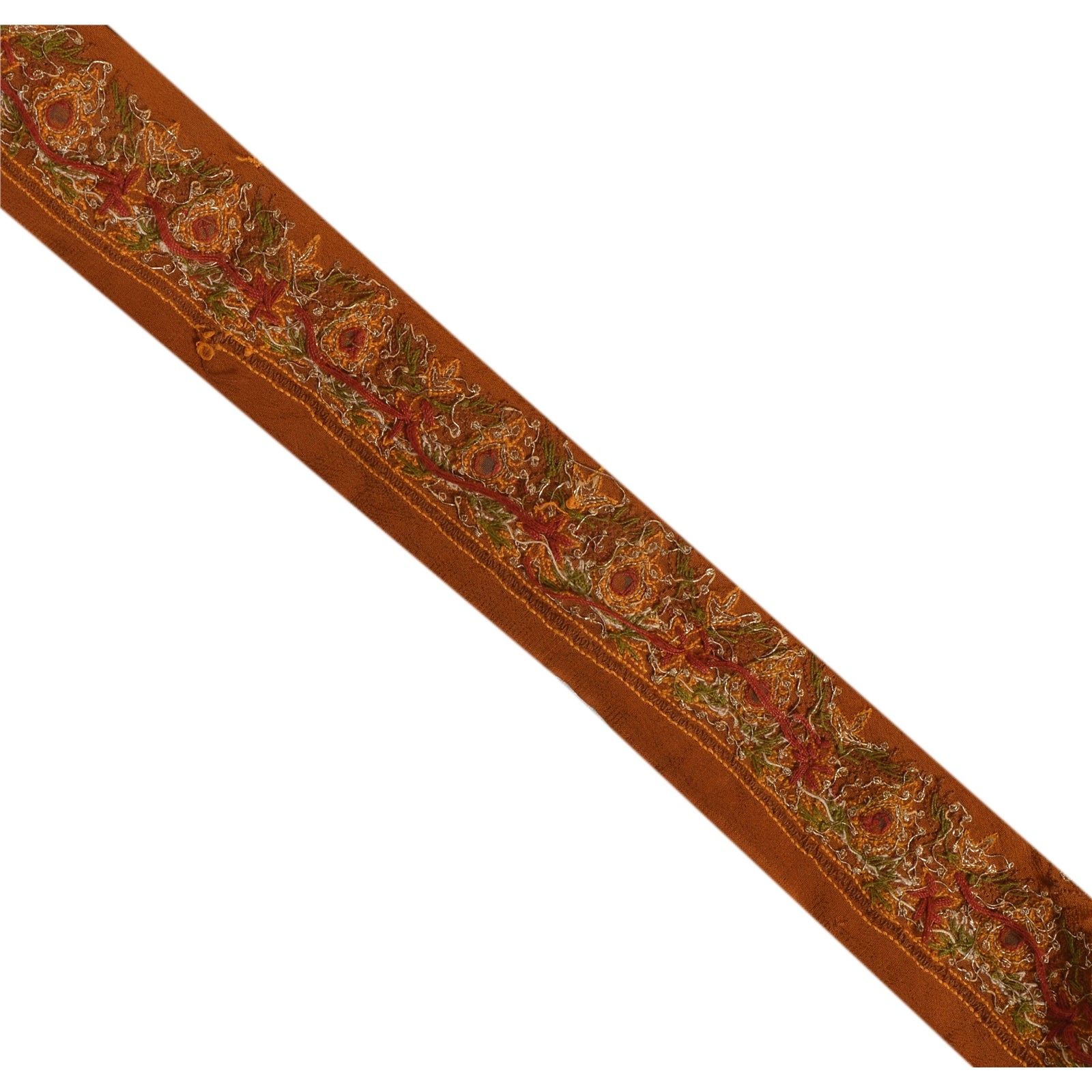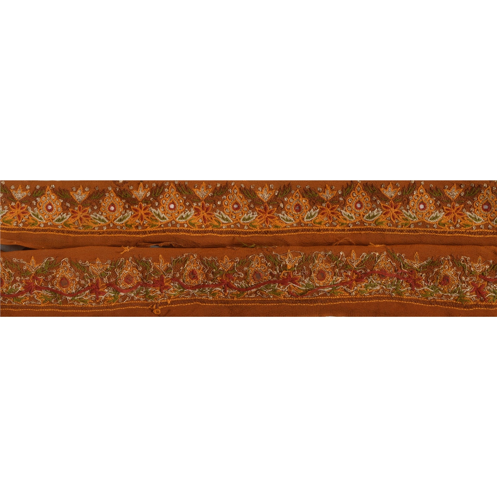 Sanskriti Vintage Sari Border Hand Embroidered 1Yd Trim Sewing Brown Craft Lace