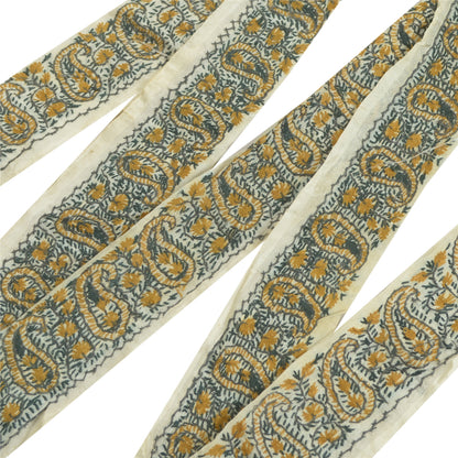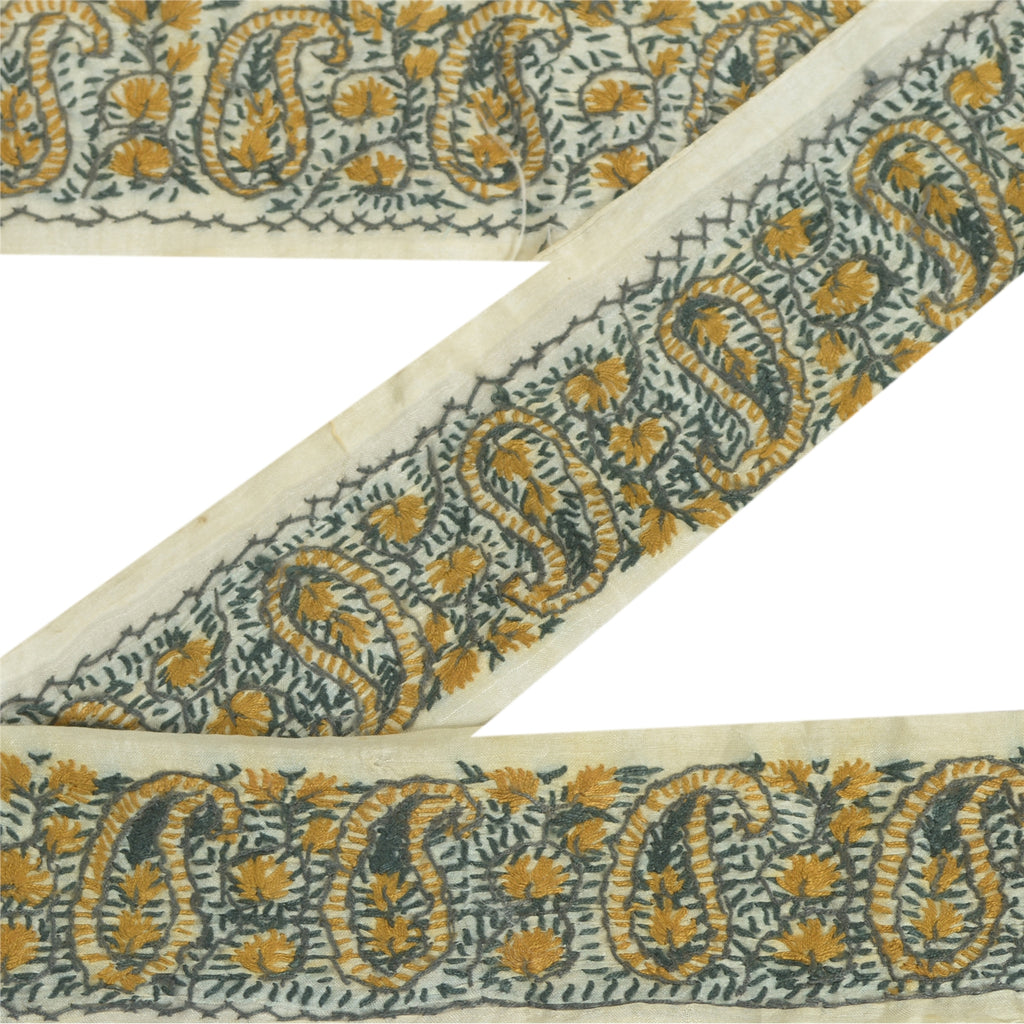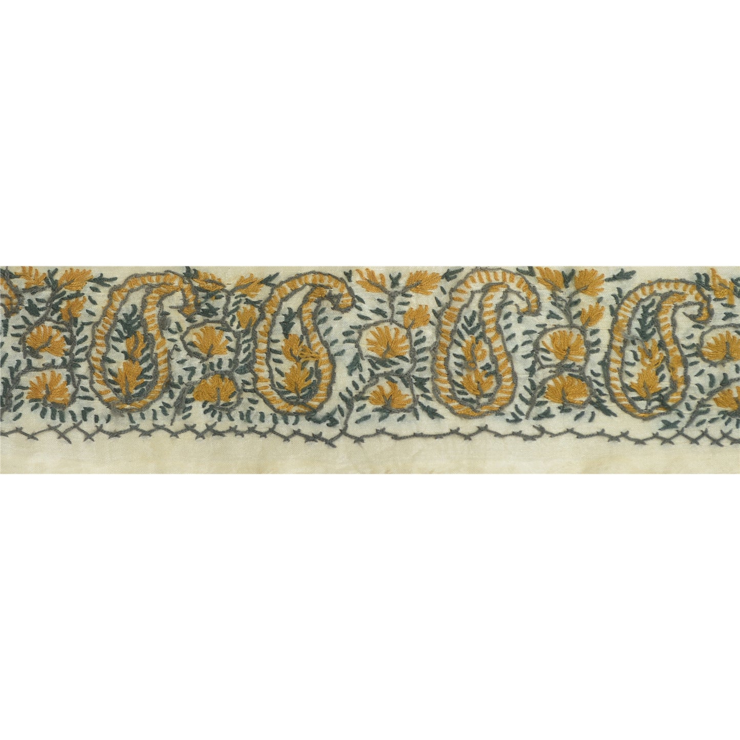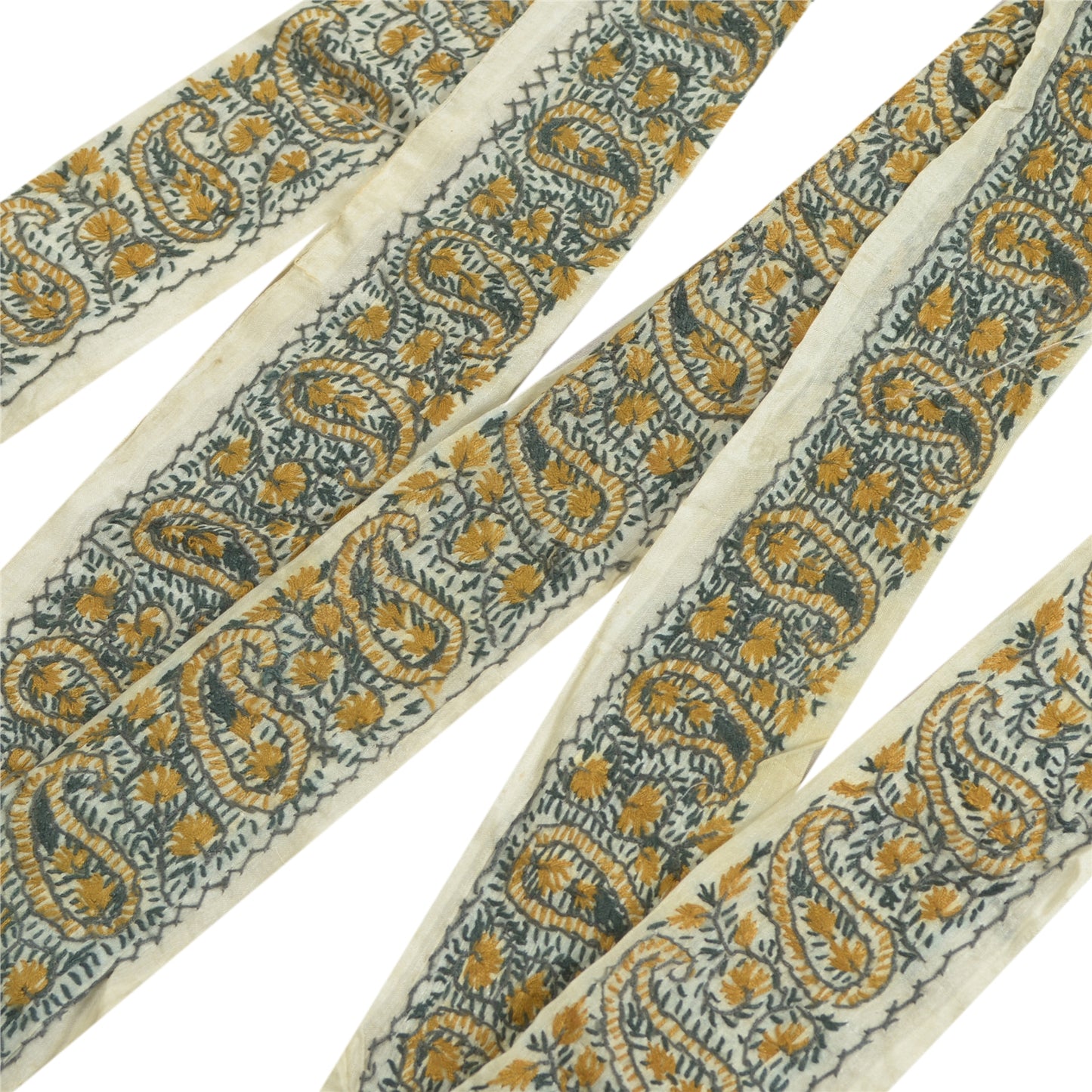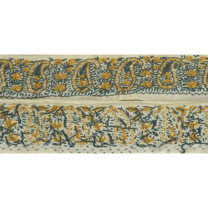 Sanskriti Vintage Sari Border Hand Embroidered Craft 1Yd Sewing Ivory Trims Lace