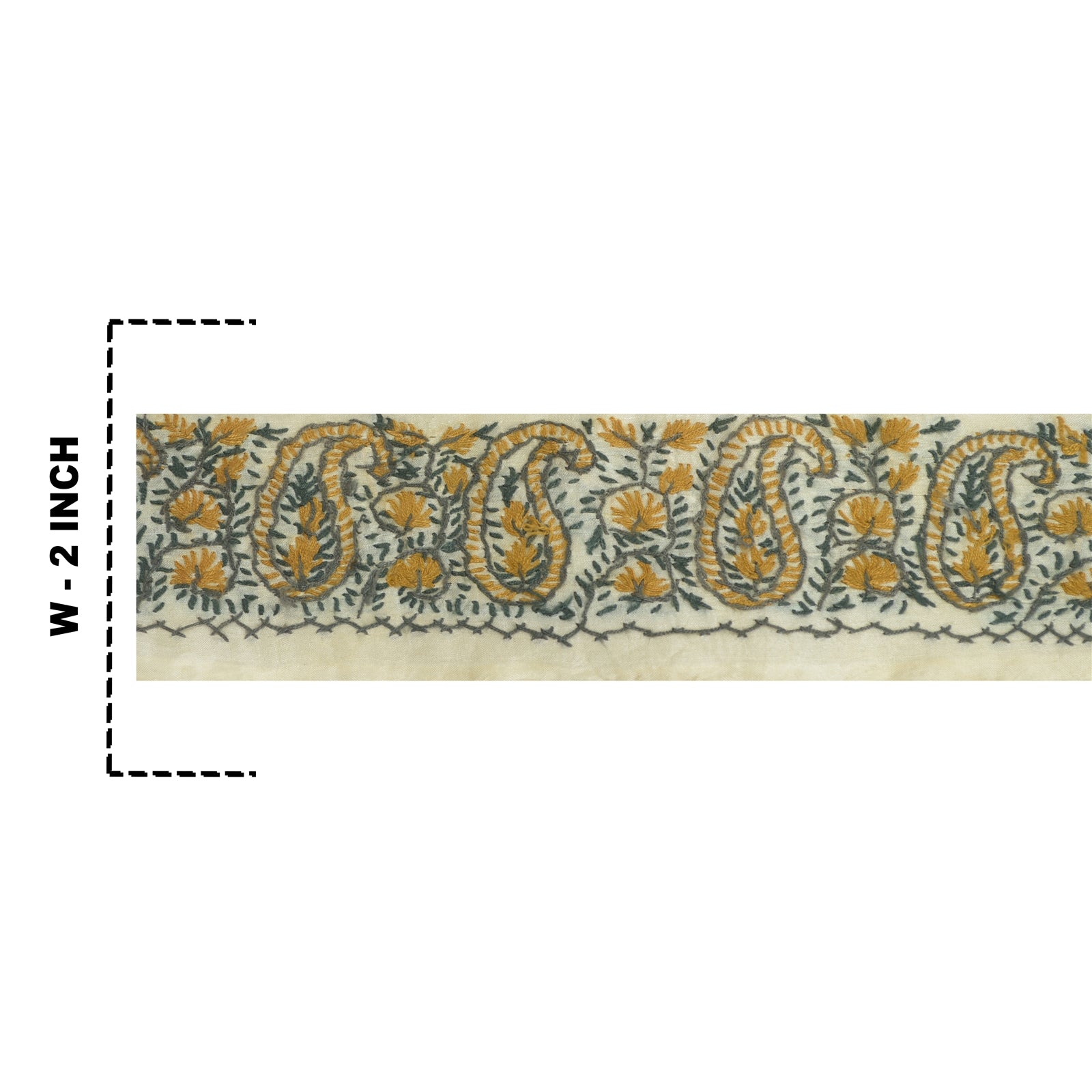 Beautiful cotton hand embroidered sari border. Further embellished by black/brown/green thread work along with floral & paisley design on ivory base Sustainable Fabric. WOW!! an awesome one of a kind versatile border. 1 quantity = 1 yard. International buyers please note: Import duties, taxes, and charges are not included in the item price or postage cost. These charges are the buyer's responsibility. Please check with your country's customs office to determine what these additional costs will be prior to bidding or buying. Buyer will pay custom duty/tax. It is calculated and charged differently by every country. As a seller I do not have any control over it.VAT or sales tax is calculated by the platform at the time of checkout. Customs charge is payable at the time of delivery.
