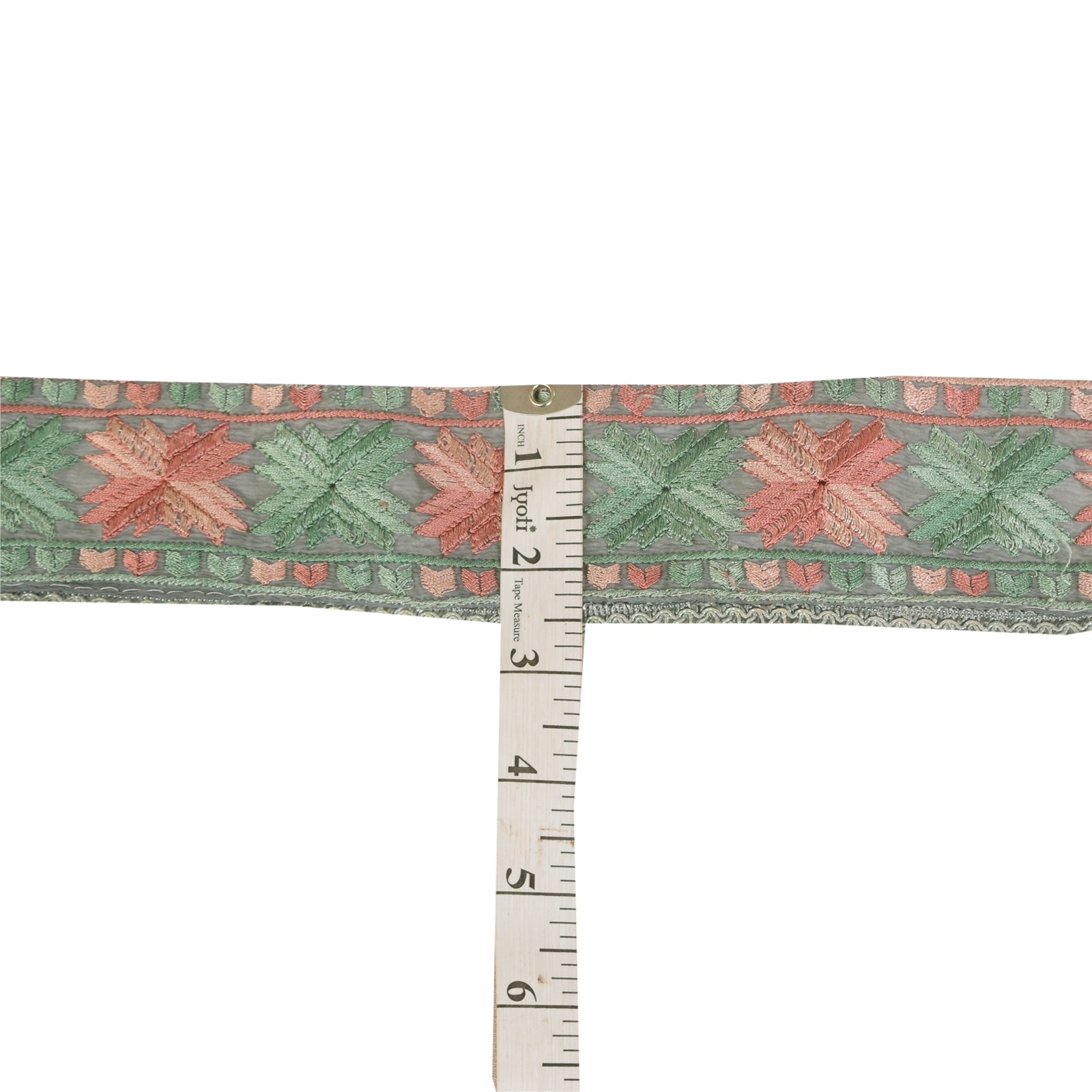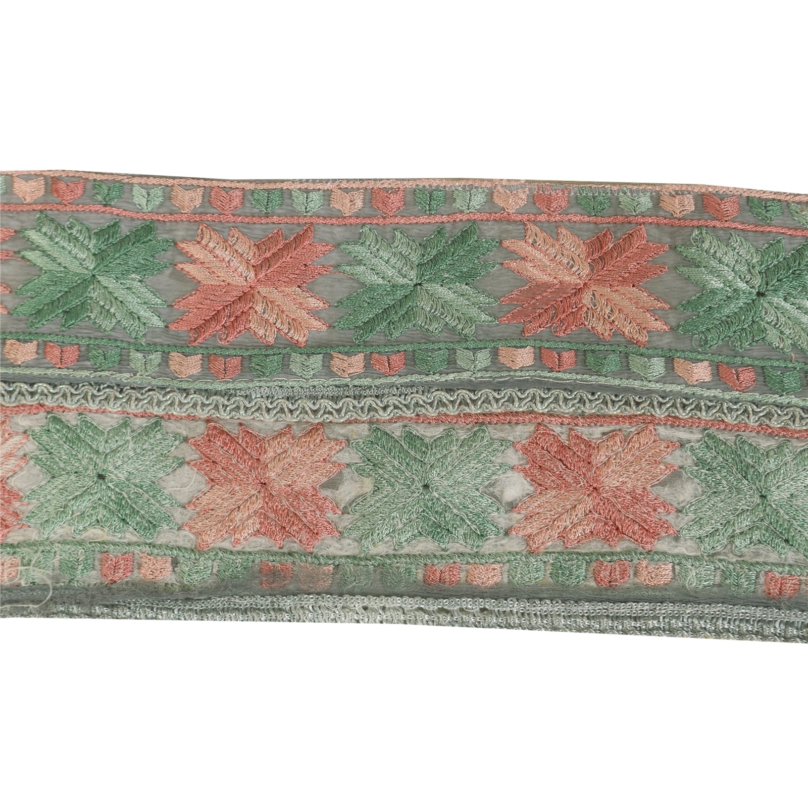 Sanskriti Vintage Sari Border Hand Embroidered Phulkari 1 YD Trim Gray 2.5W Lace