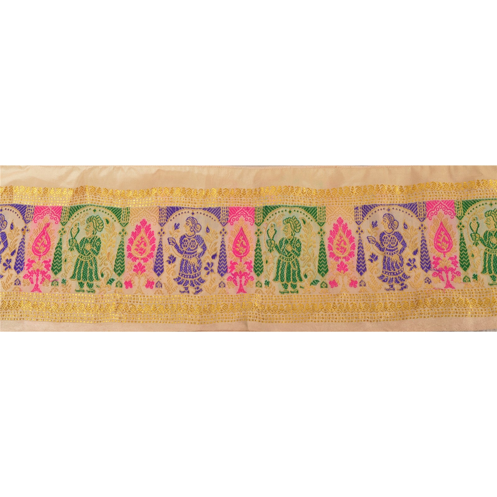 Sanskriti Vintage Sari Border Woven Baluchari 1 Yd Craft Trim Sewing Cream Lace