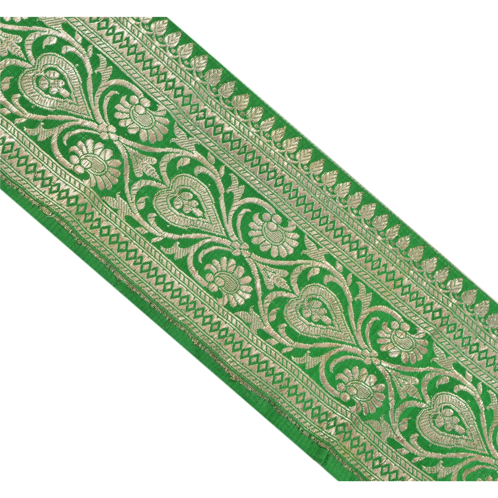 Sanskriti Vintage Sari Border Woven Brocade 1 Yd Trim Craft Sewing Green Lace