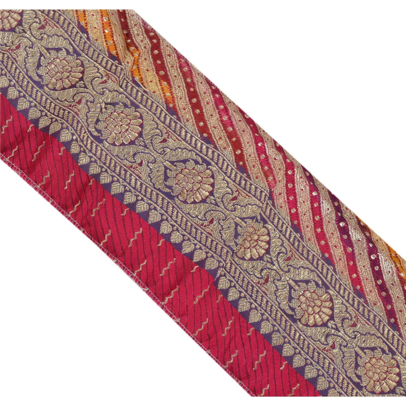 Sanskriti Vintage Sari Border Woven Brocade 1 Yd Trim Craft Sewing Pink Lace