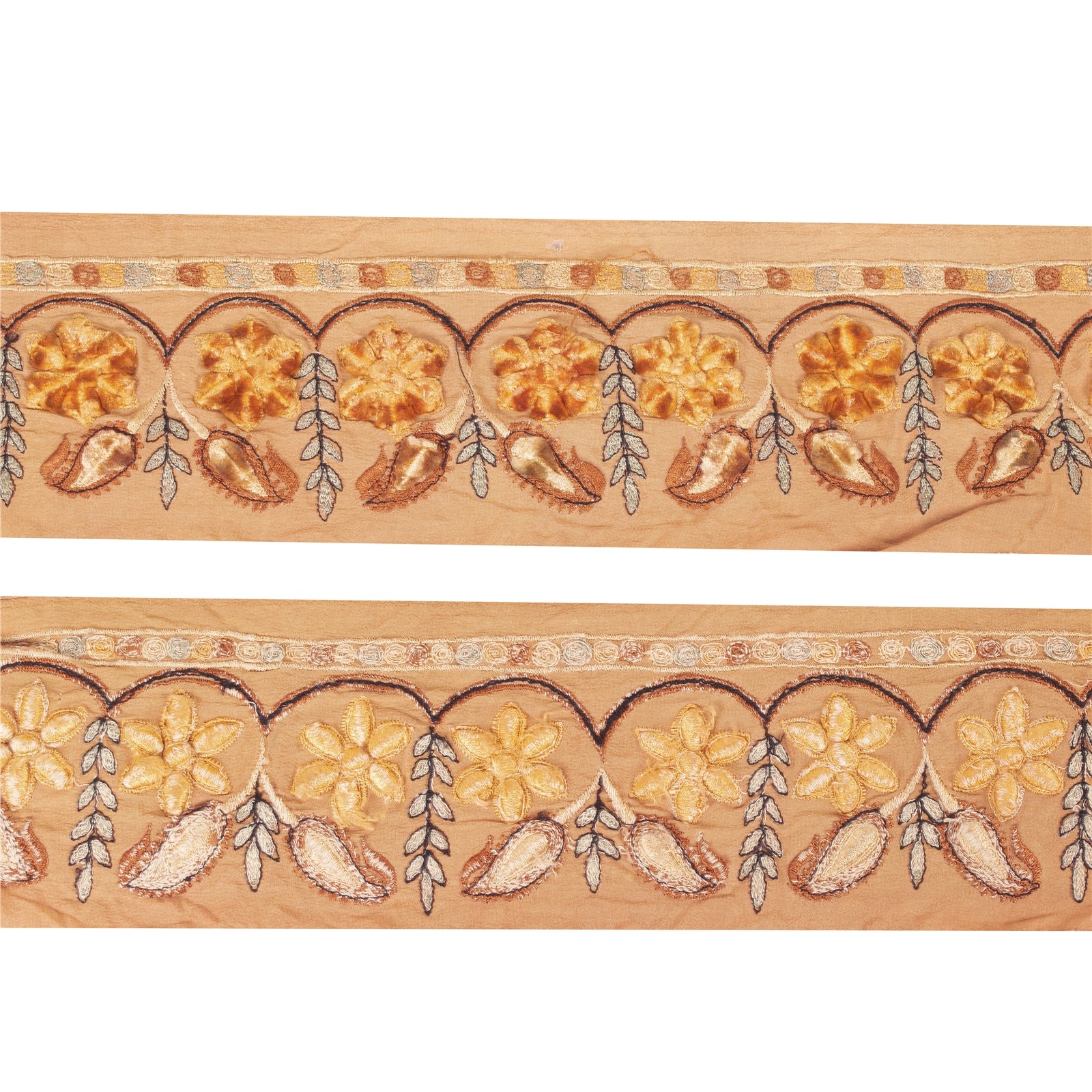 THE ITEM COLOR OR SHADE MAY BE DARKER OR LIGHTER THAN THE PICTURE.' Beautiful pure crepe silk embroidered sari border. Further embellished by brown/black/orange/grey thread work. Also, you can see orange velvet patch work along with floral & paisley design on rusty orange base fabric. 1 Quantity = 1 Yard International buyers please note: Import duties, taxes, and charges are not included in the item price or postage cost. These charges are the buyer's responsibility. Please check with your country's customs office to determine what these additional costs will be prior to bidding or buying. Buyer will pay custom duty/tax. It is calculated and charged differently by every country. As a seller I do not have any control over it.VAT or sales tax is calculated by the platform at the time of checkout. Customs charge is payable at the time of delivery. B-6819