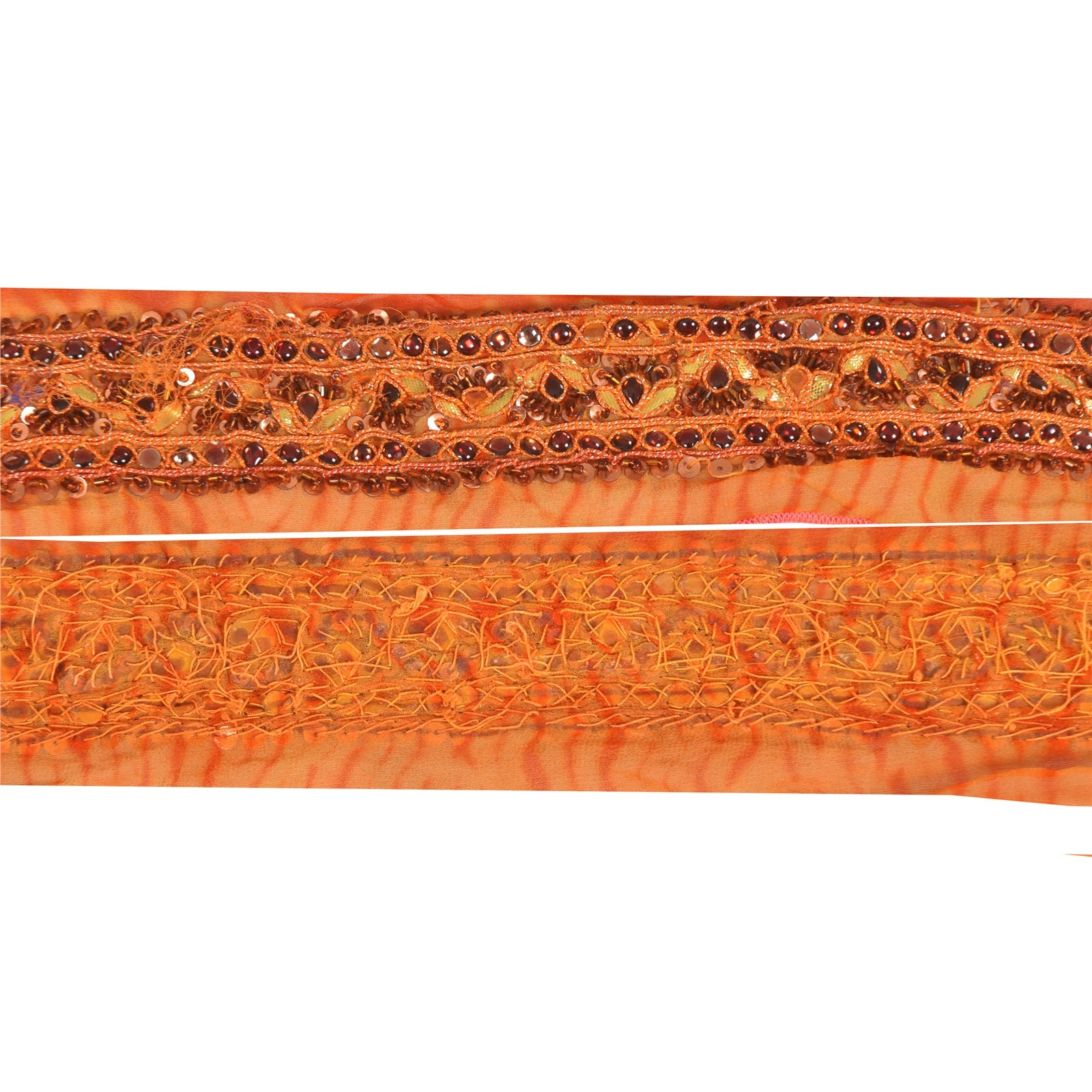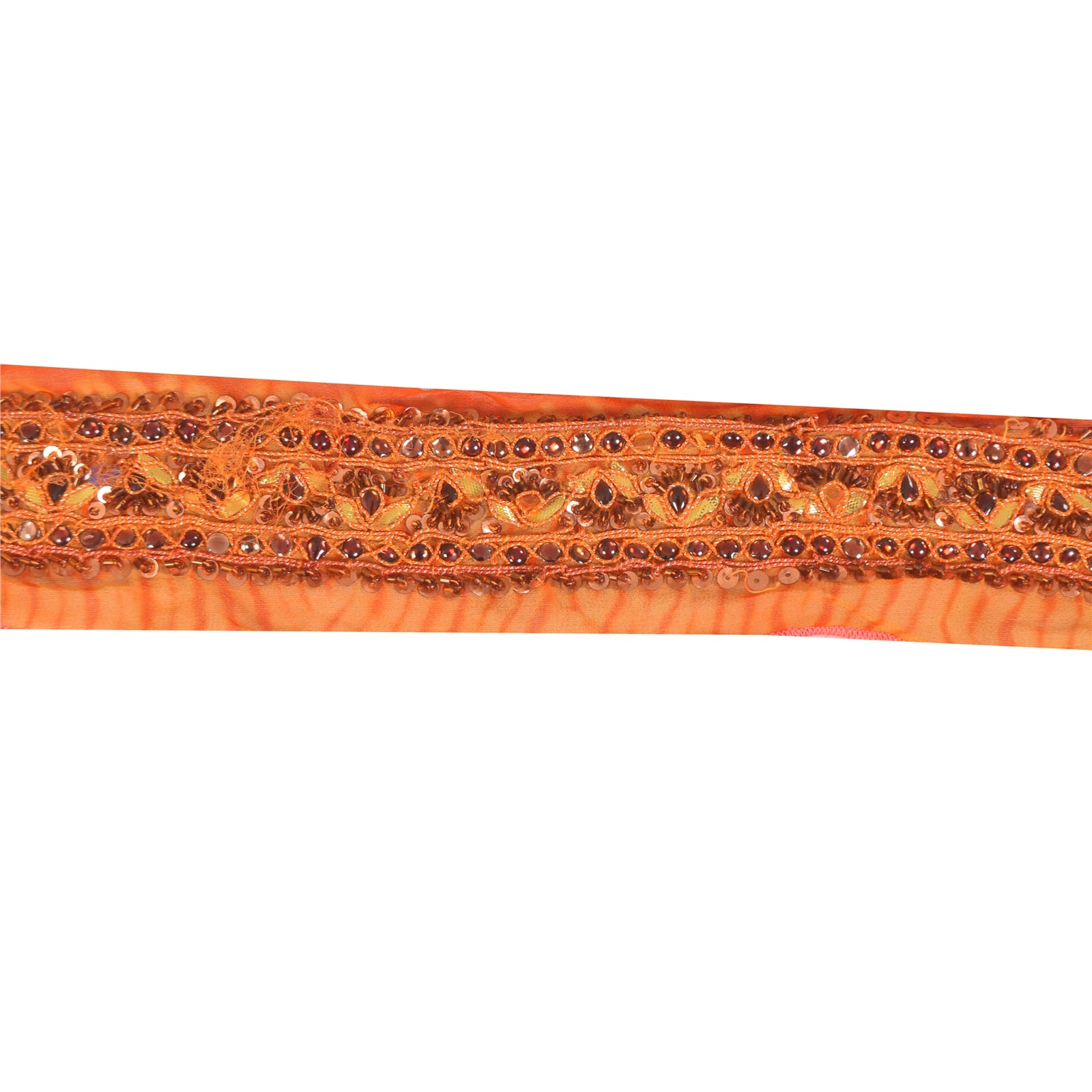 Sanskriti Vintage Sari/Saree Border Hand Beaded Zari 1 YD Trim Orange 3.5W Lace