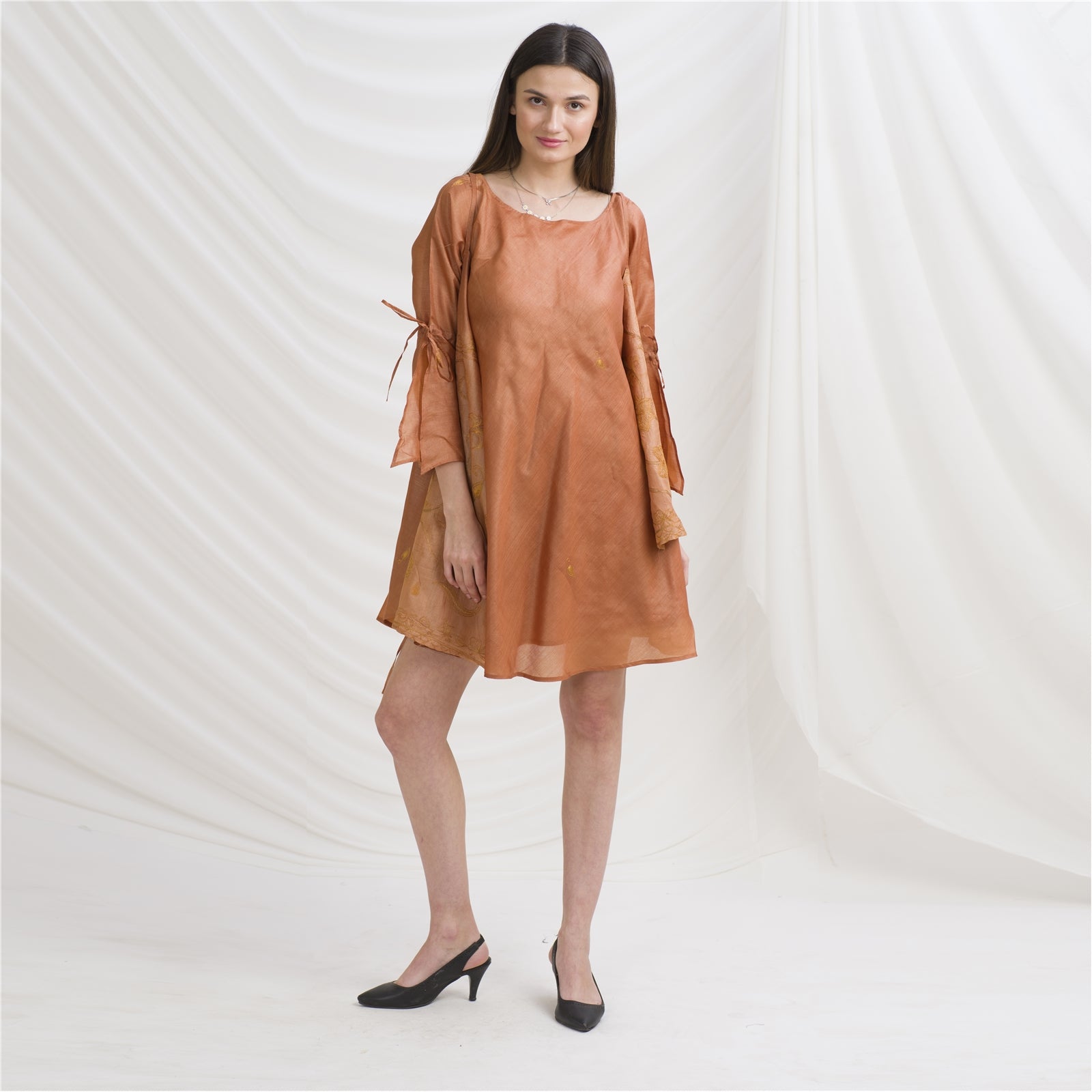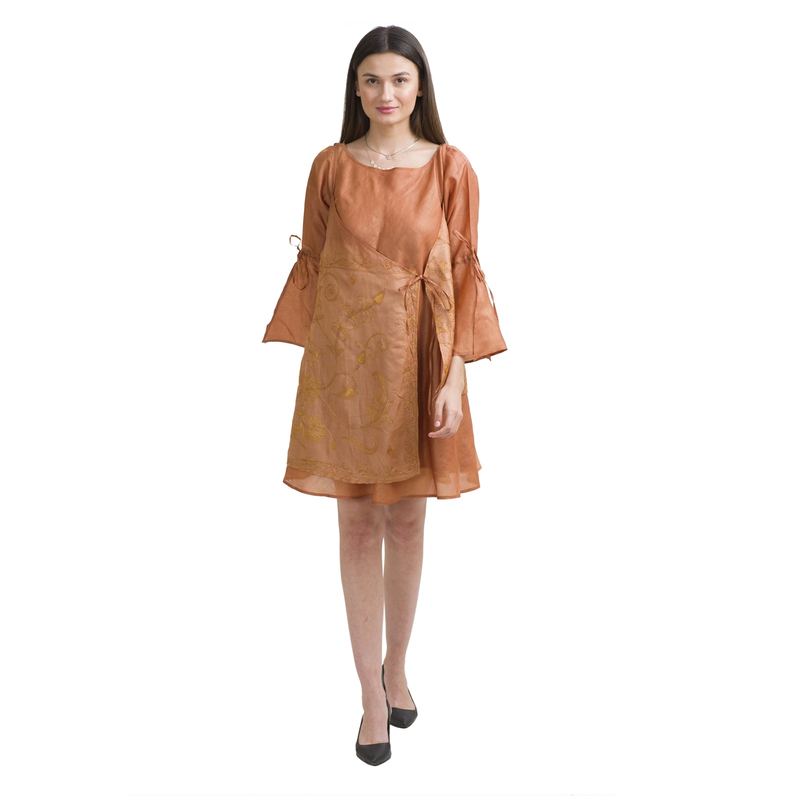 Sanskriti Vintage Tunic Dress with Jacket, Pure Tussar Silk Upcycled Sari, Free Size