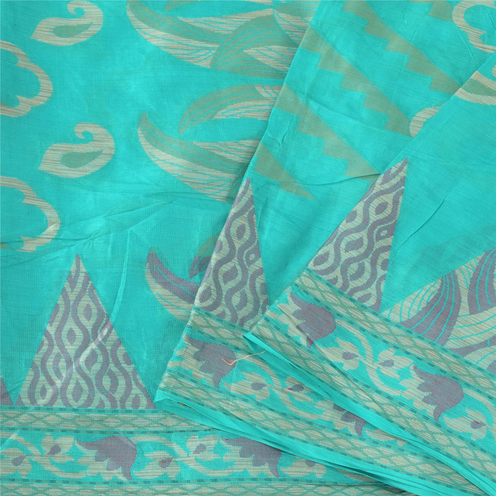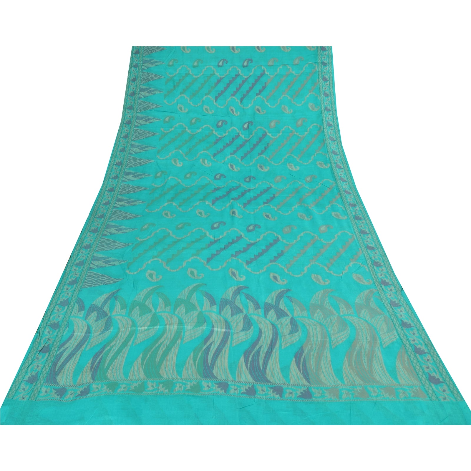 THE ITEM COLOR OR SHADE MAY BE DARKER OR LIGHTER THAN THE PICTURE.' An Awesome Sari In 100% Pure Silk Turquoise Blue Colored Hand woven Sari/Sustainable Fabric. Pallu & Border Features floral design embellished with Brown, pink & green color woven work. You Can See Center Portion Of The Sari Has Similar Work With Floral Design. This unique vintage saree can be used for various crafting ideas for example design a dress, use it as a throw, as window dressing, upholstery, table linen and much more. Let your creative juices flow and use this decorated Sustainable Fabric in multiple fashion Shipping note: International buyers please note: Import duties, taxes, and charges are not included in the item price or postage cost. These charges are the buyer's responsibility. Please check with your country's customs office to determine what these additional costs will be prior to bidding or buying. Buyer will pay custom duty/tax. It is calculated and charged differently by every country. As a seller I do not have any control over it. VAT or sales tax is calculated by the platform at the time of checkout. Customs charge is payable at the time of delivery. SKU: PS-64231