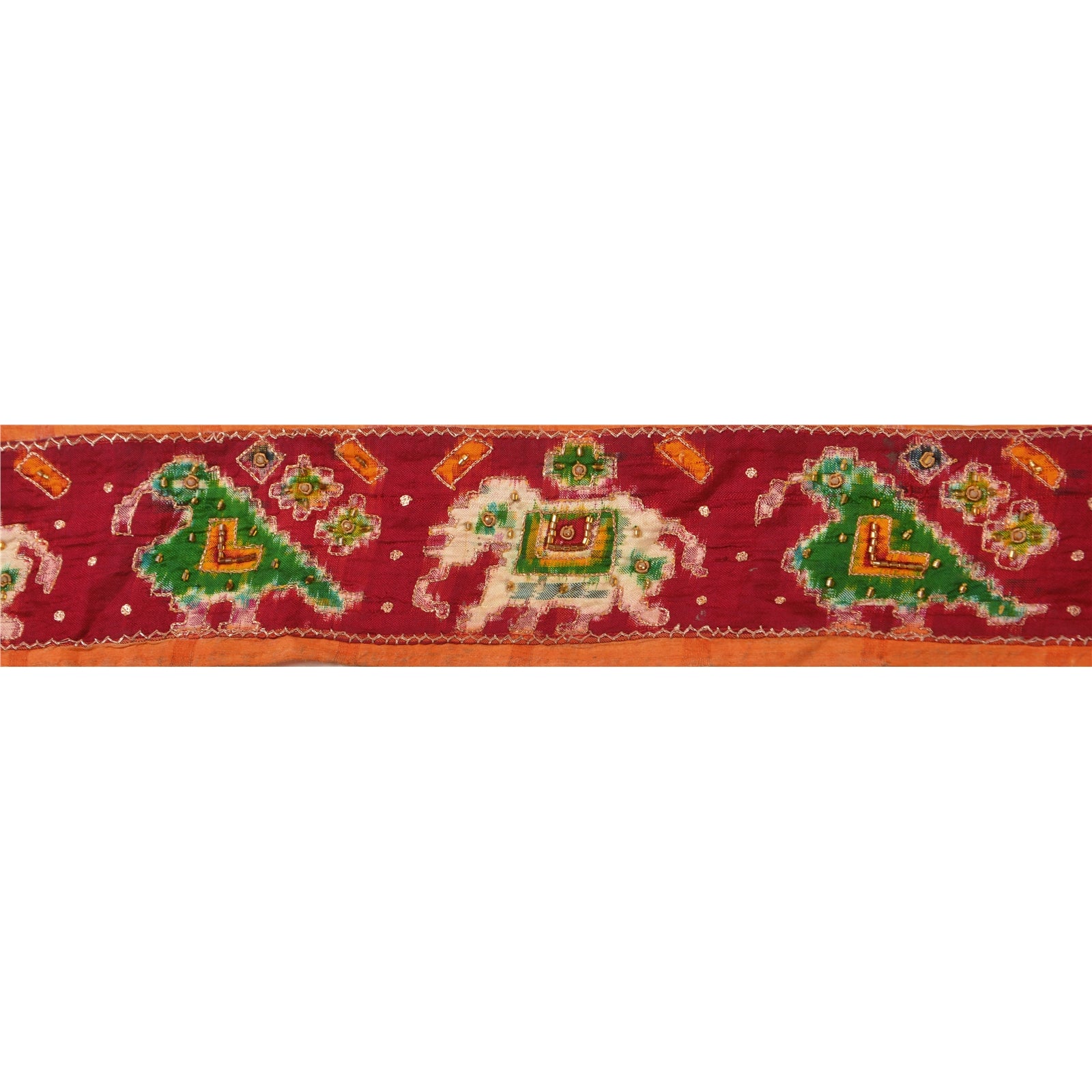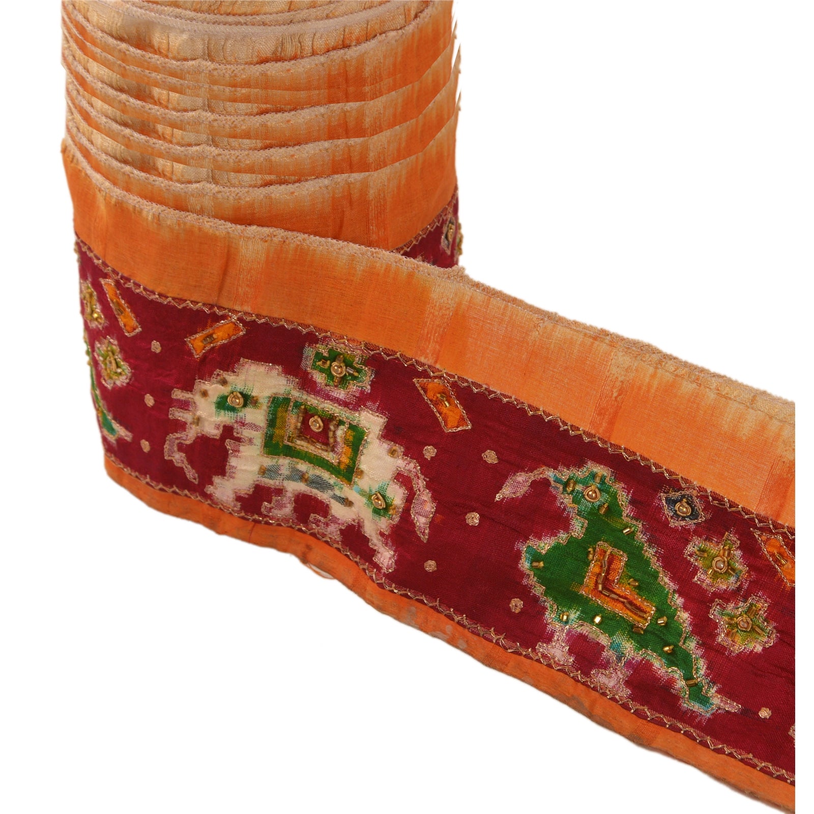 Sanskriti Vintage Woven Patola Sari Border Hand Beaded 1 Yd Trim Sewing Lace