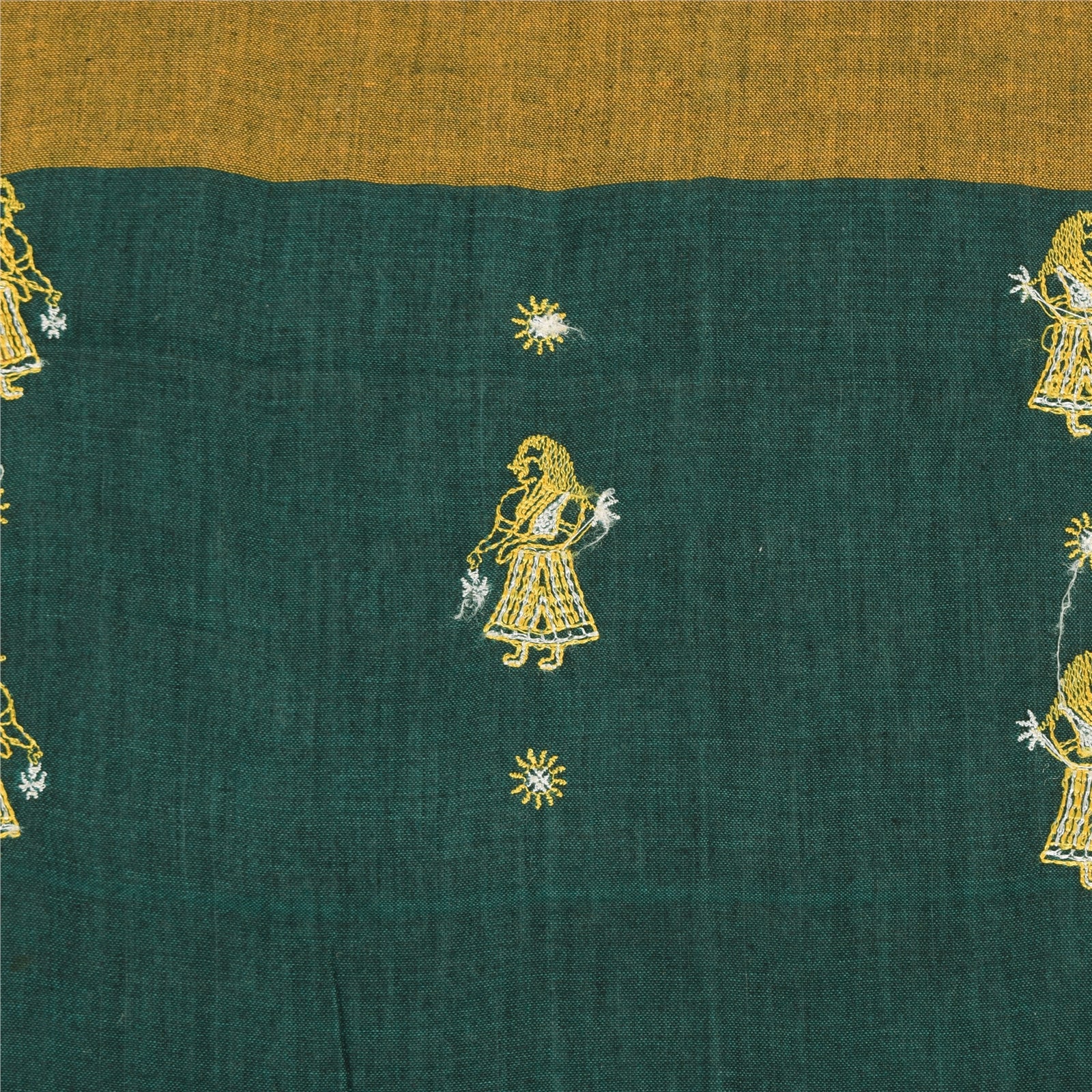 Sanskriti Vintage Yellow/Green Dupatta Long Stole Pure Cotton Woven Premium Veil