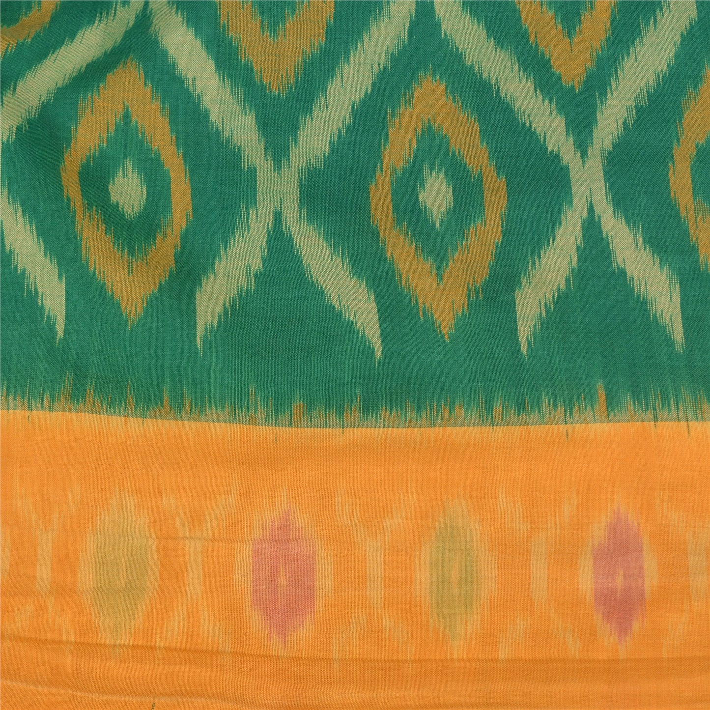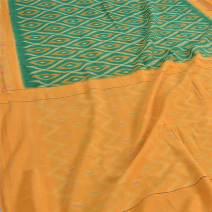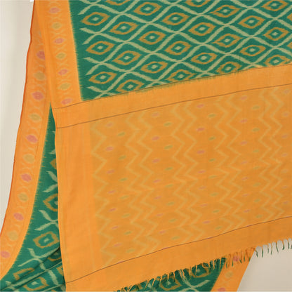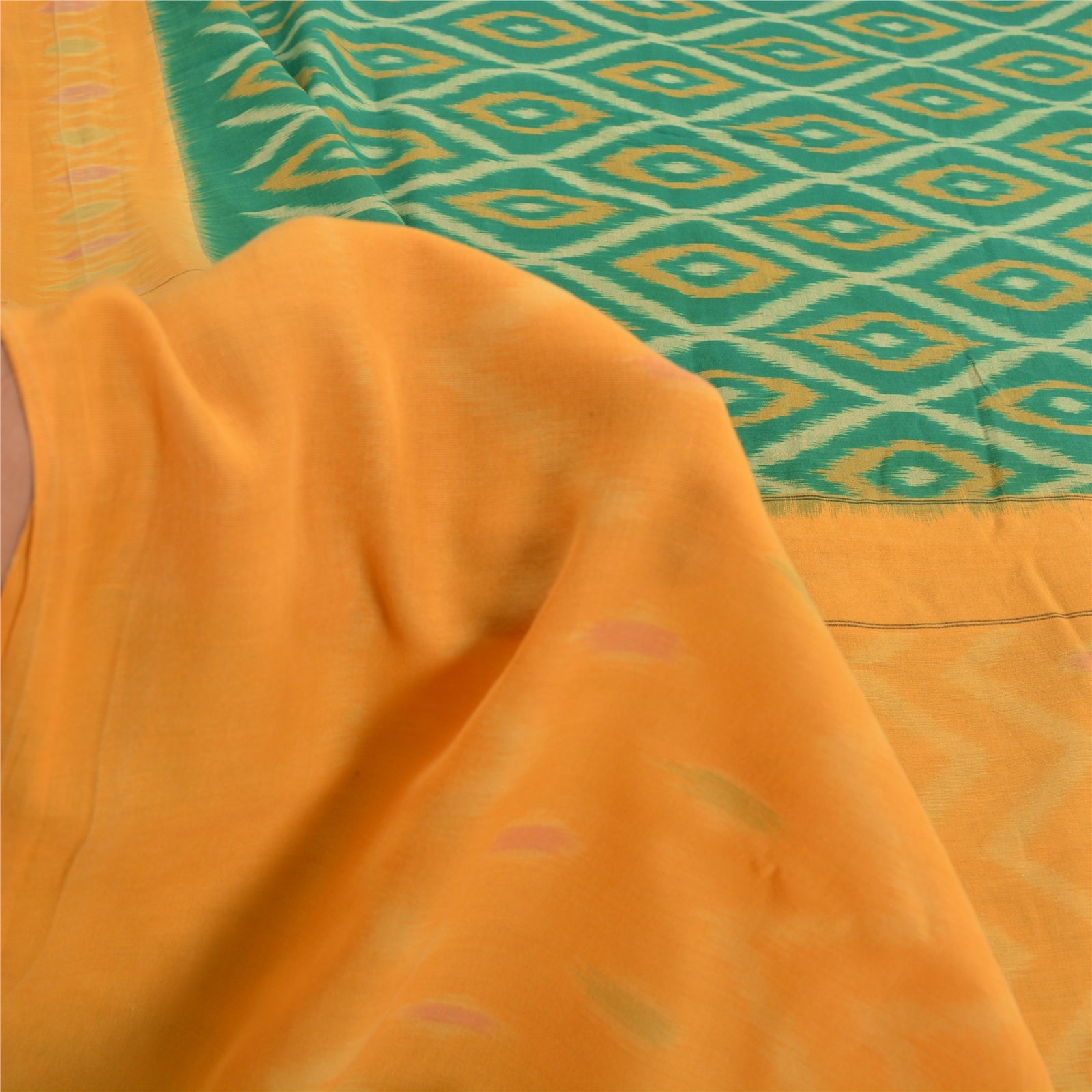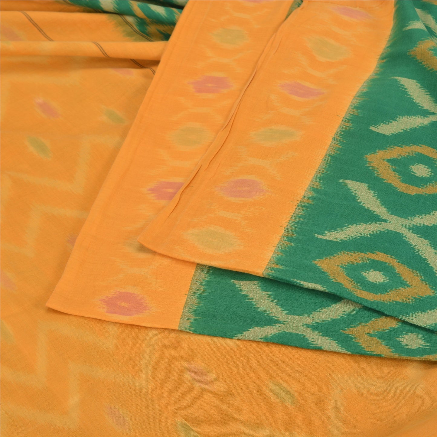 Sanskriti Vintage Yellow/Green Sarees Pure Cotton Woven Ikat Premium Sari Sustainable Fabric
