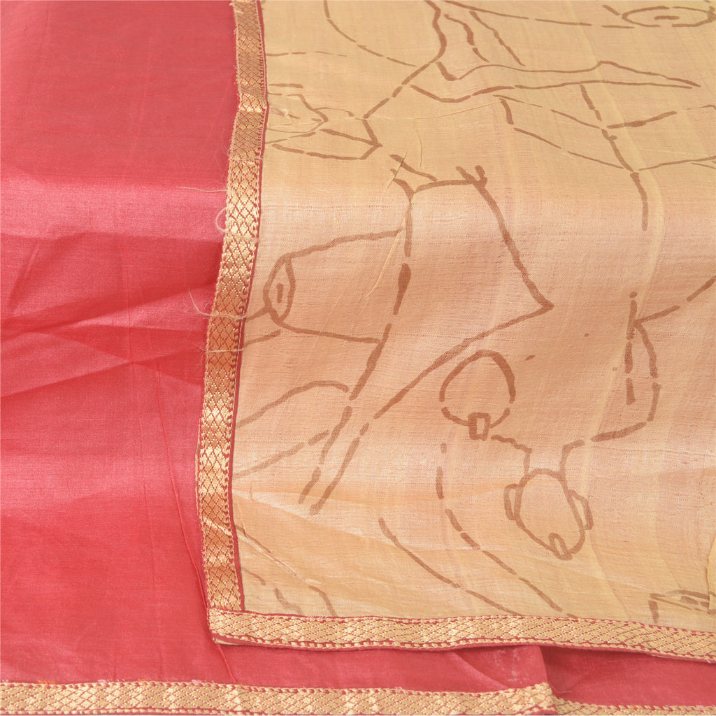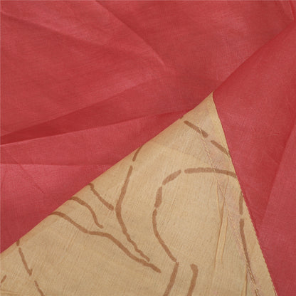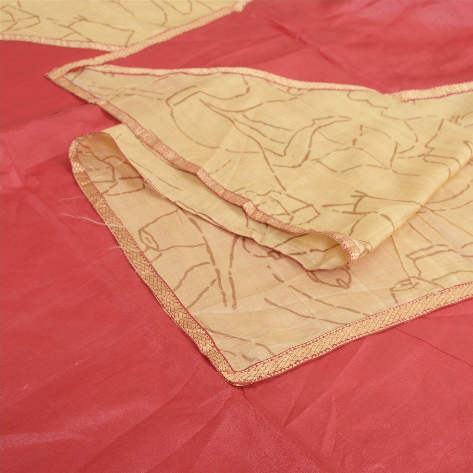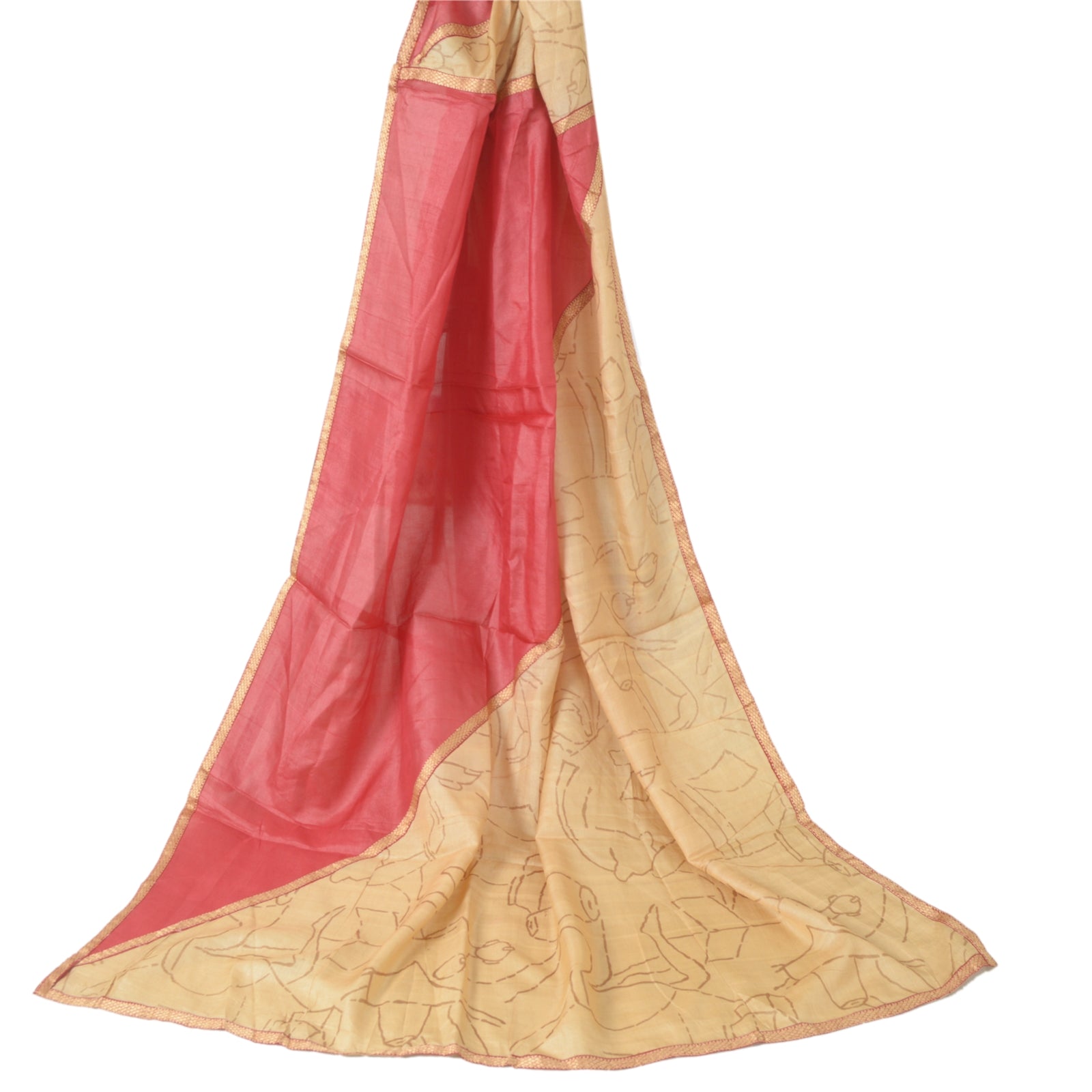 Sansrkiti Vintage Long Stole Dupatta Red/Cream Pure Silk Printed Woven Scarves