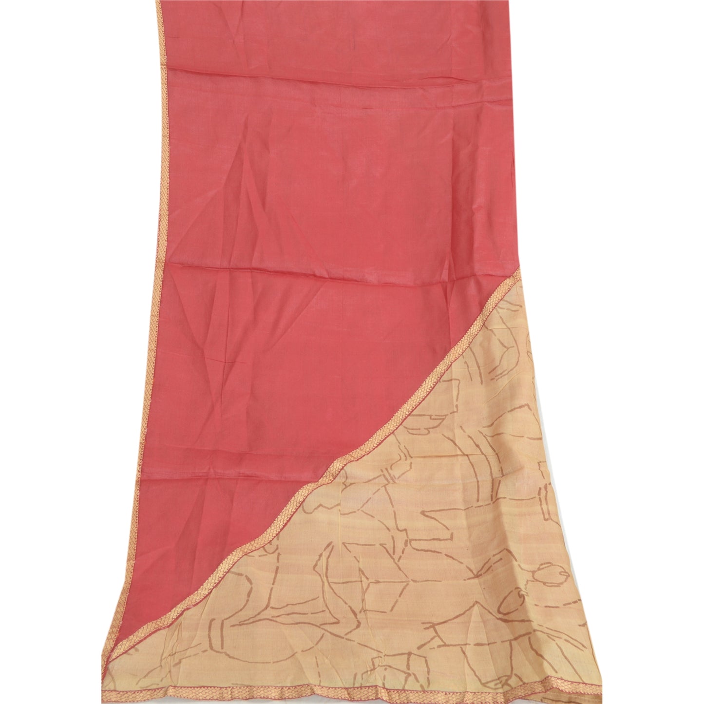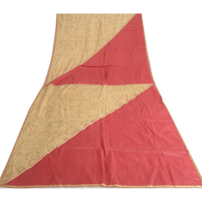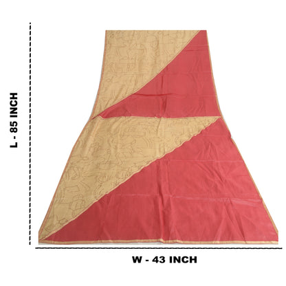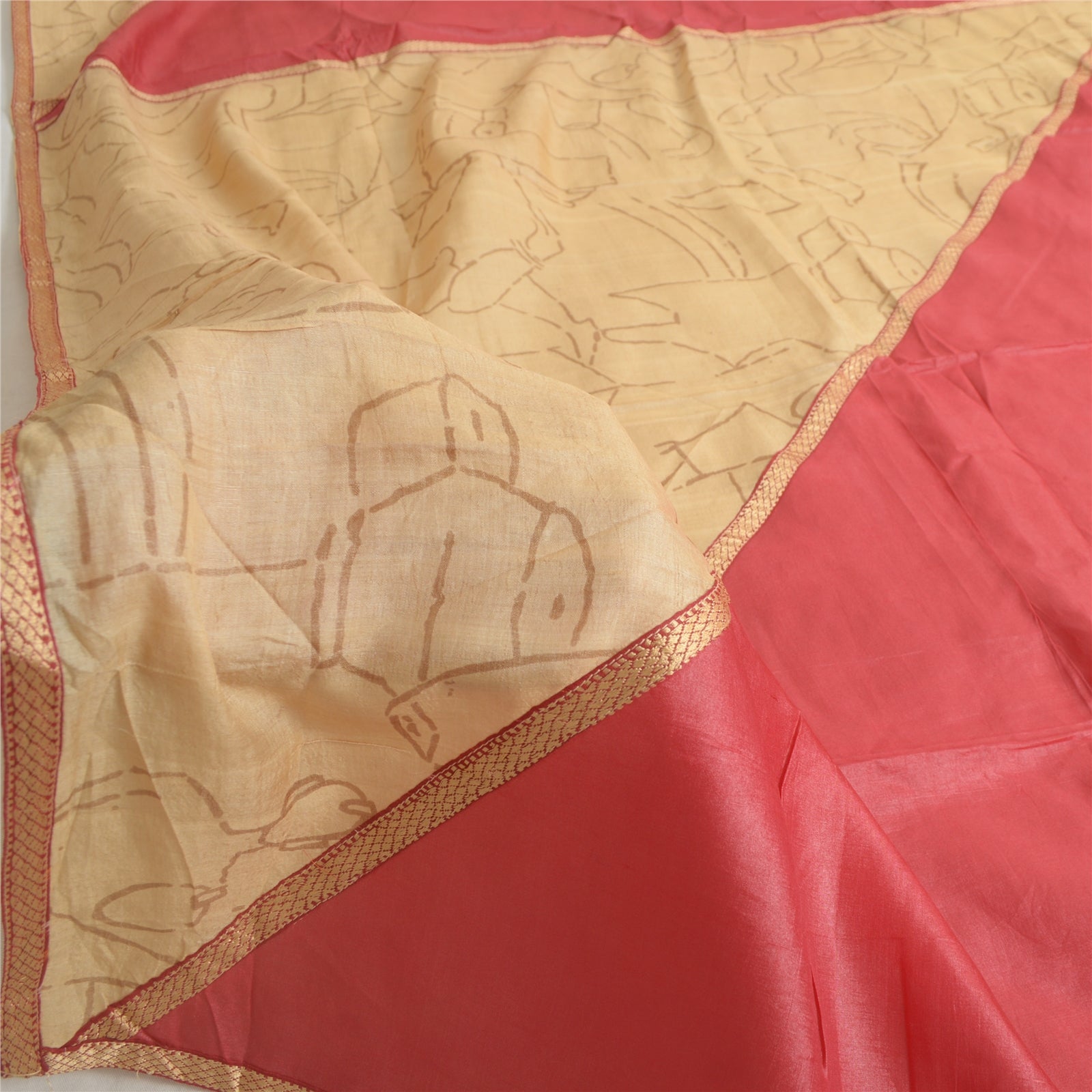 Sansrkiti Vintage Long Stole Dupatta Red/Cream Pure Silk Printed Woven Scarves