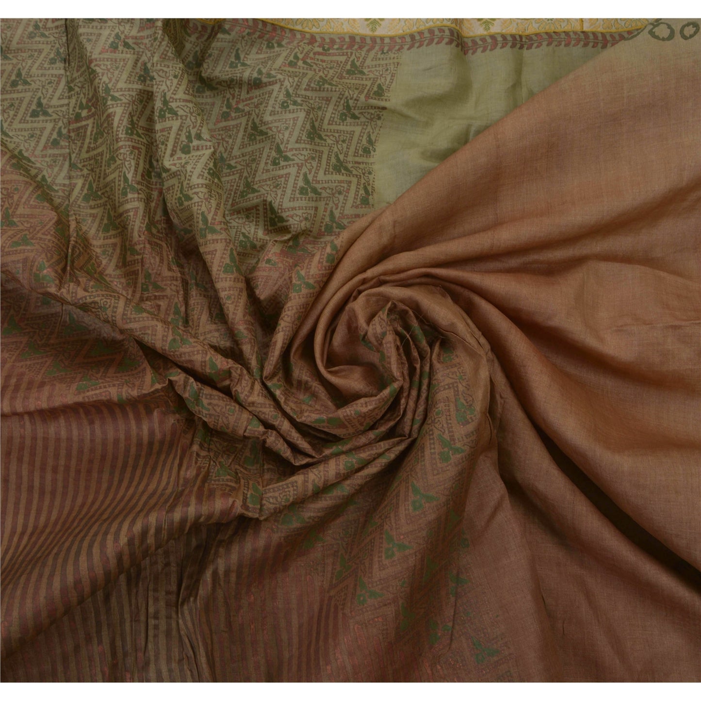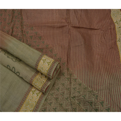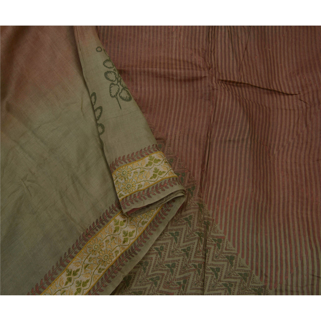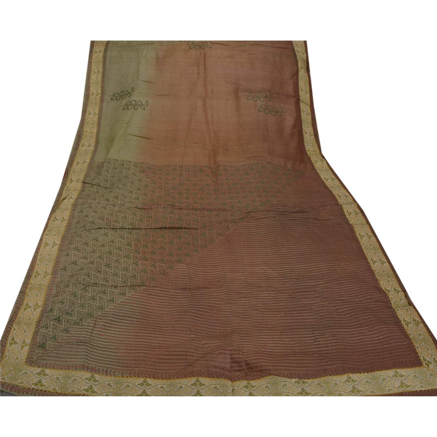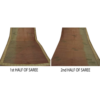 ? Beautiful green & brown colored embroidered Painted pure silk sari ? Border features floral design embellished with woven cream Sustainable Fabric patch work gives a unique look to this saree. ? There are floral motifs with painted work in center part of sari. What is special about this saree? Nice painted work with floral design on green & brown color base Sustainable Fabric is really enhancing the beauty of the saree. This unique vintage saree can be used for various crafting ideas even if you don't want to use it as a sari. Design a dress, use it as a throw, as window dressing, upholstery, sarongs, table linen and much more. Let your creative juices flow and use this decorated Sustainable Fabric in multiple fashion.